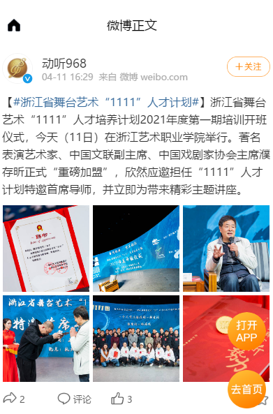 动听968微博:#浙江省舞台艺术“1111”人才计划