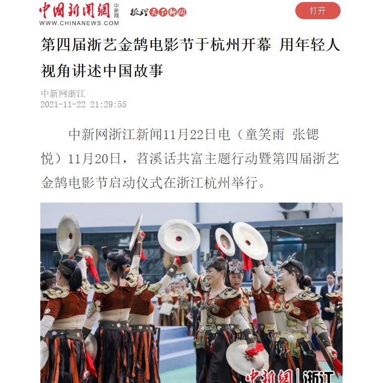 中新网:第四届浙艺金鹄电影节于杭州开幕 用年轻人视角讲述中国故事