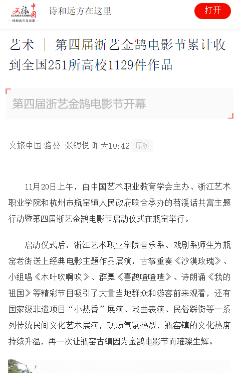文旅中国:艺术 | 第四届浙艺金鹄电影节累计收到全国251所高校1129件作品