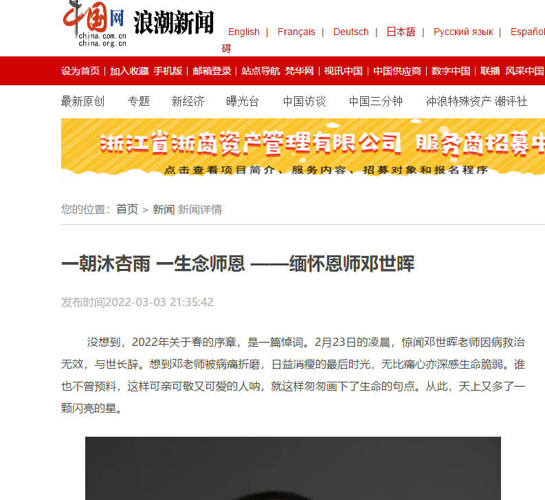 中国网浪潮新闻:一朝沐杏雨 一生念师恩 ——缅怀恩师邓世晖