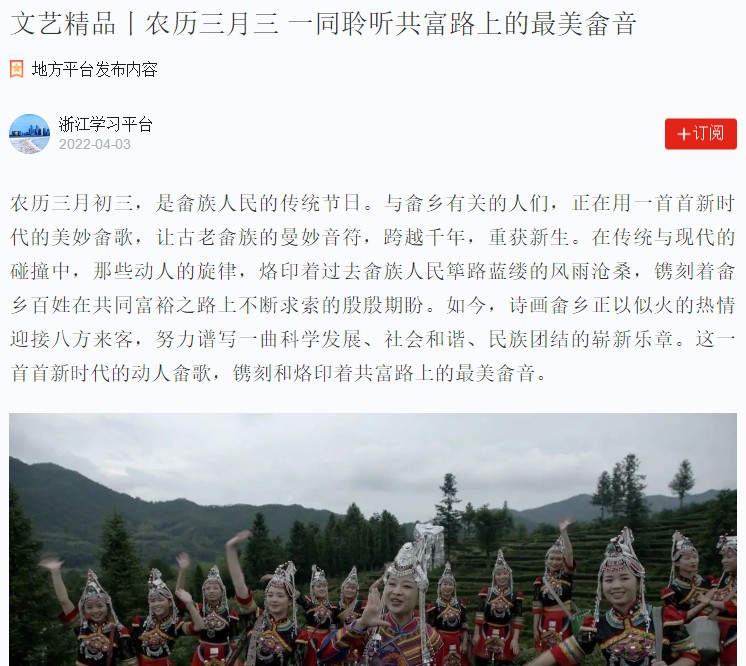 学习强国浙江平台:文艺精品丨农历三月三 一同聆听共富路上的最美畲音