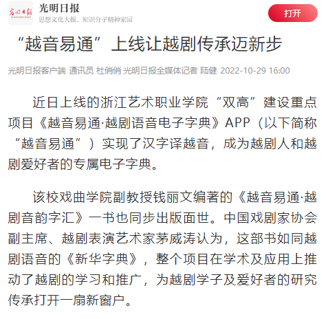 光明日报:“越音易通”上线让越剧传承迈新步