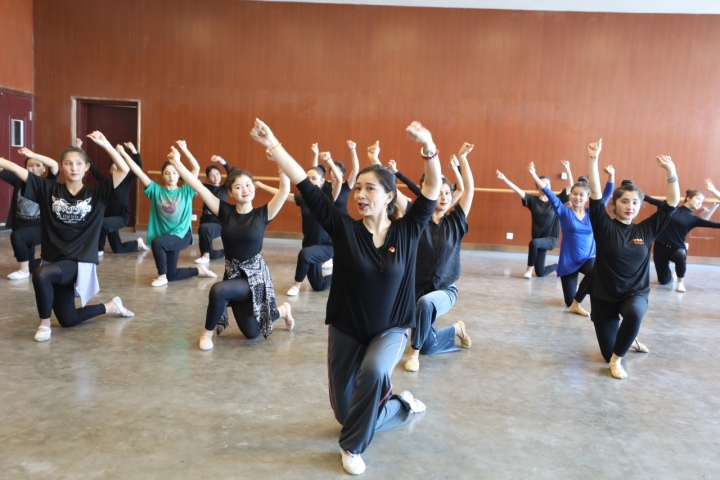 阿克苏职业技术学院人文艺术学院舞蹈专业教师古力克孜·莫合塔尔在进行舞蹈教学