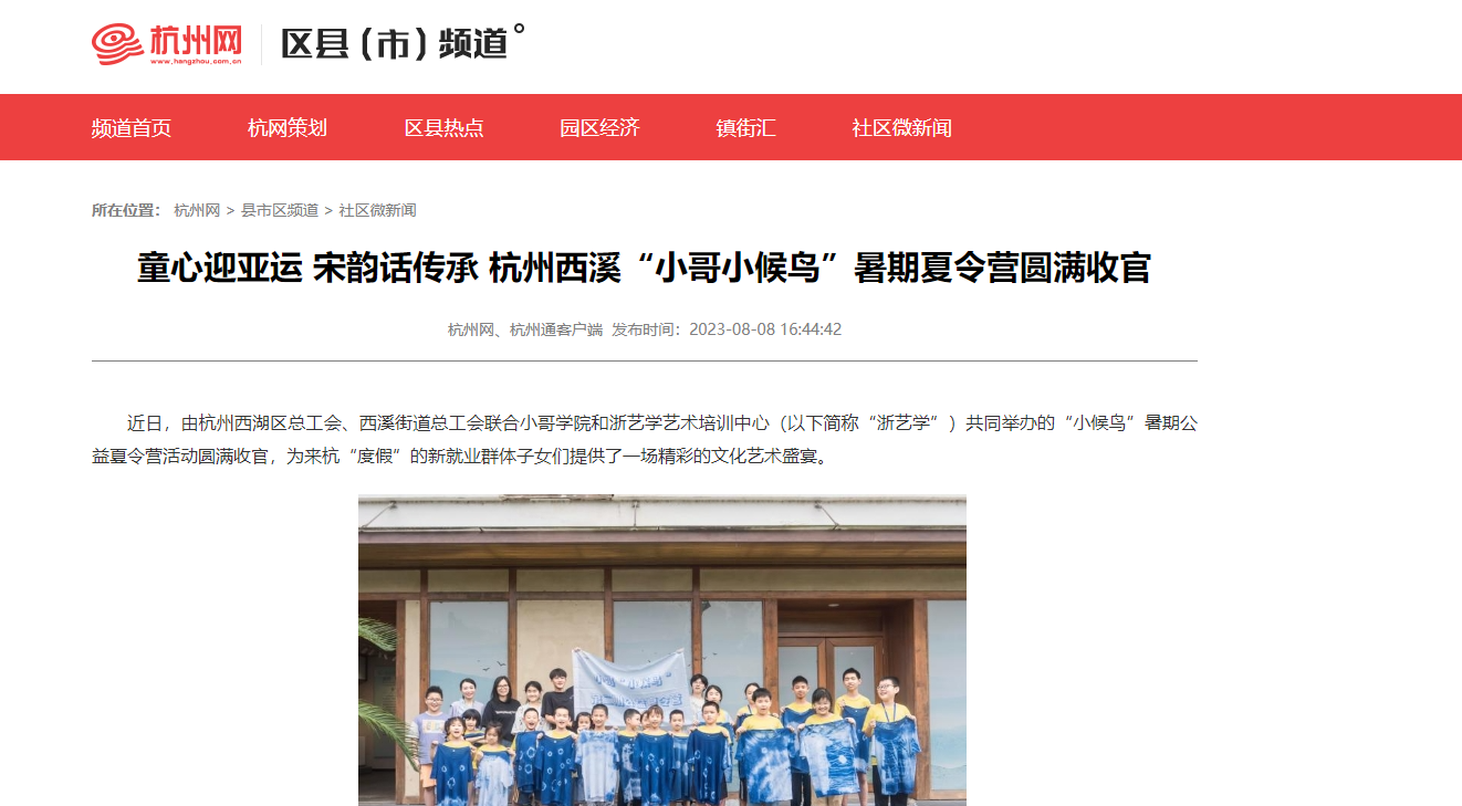 杭州网:童心迎亚运 宋韵话传承 杭州西溪“小哥小候鸟”暑期夏令营圆满收官