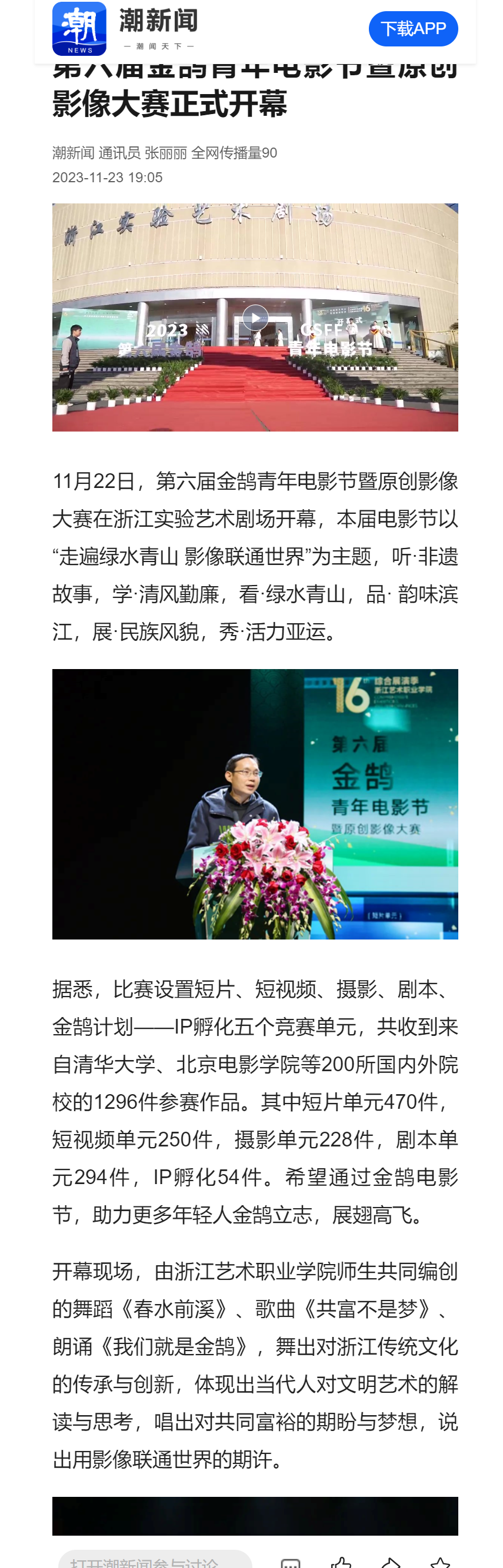 潮新闻:第六届金鹄青年电影节暨原创影像大赛正式开幕