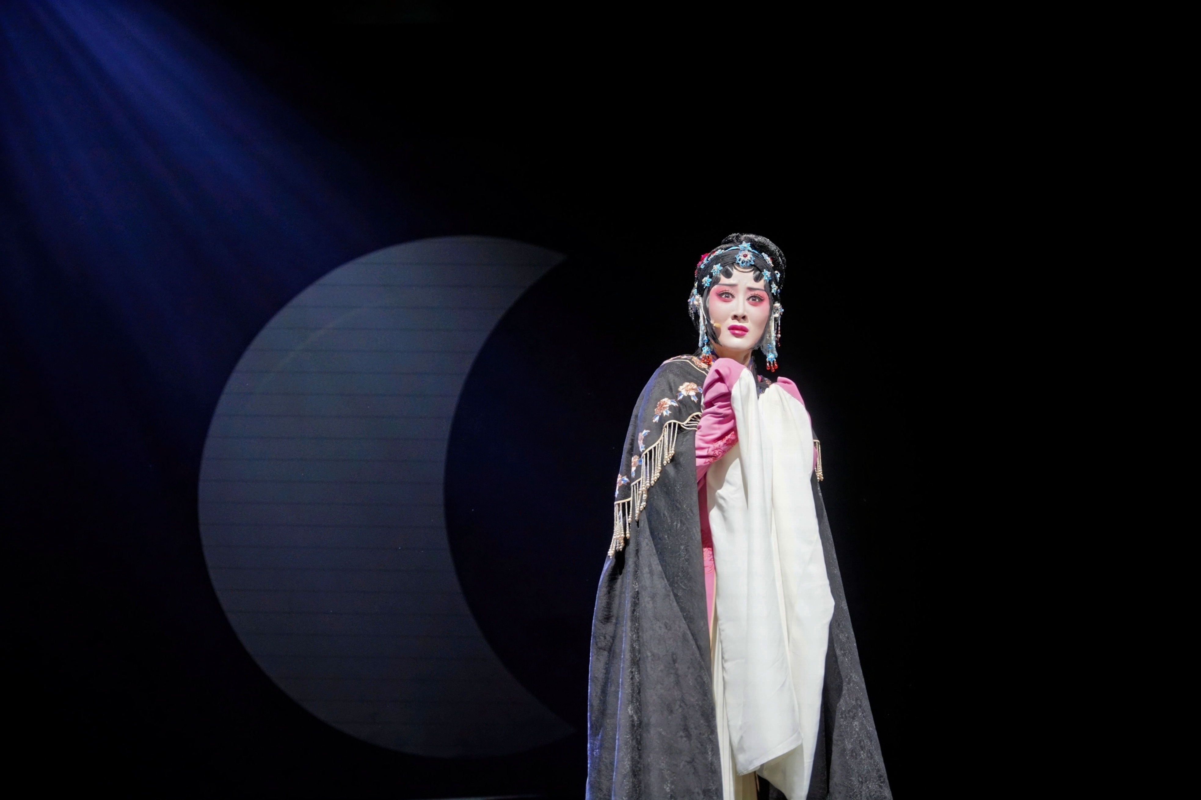 该剧改编自梨园戏经典《节妇吟》,讲述了寡妇颜氏面对重重阻力冲破内心禁锢、勇敢逐爱的历程,引发当下观众对个体自由与情感释放的共鸣。在创作上,《颜氏》吸纳梨园戏身韵与古典舞精髓,拓展越剧表现力;音乐紧扣越剧声腔特色,打造具有江南古典气质的音乐氛围;舞美设计简洁而富有巧思,通过月的变化映照主角的内心变化;造型设计古典雅致,凸显人物气质,注重人物心理情感外化。
