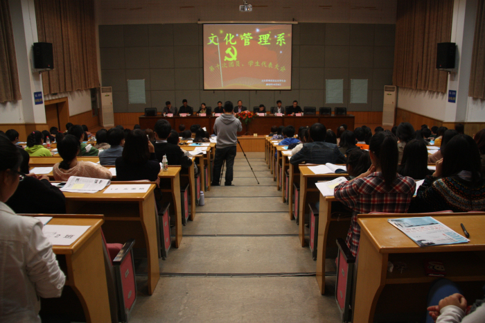 11月6日,浙江艺术职业学院文化管理系第十次团员、学生代表大会在图信中心隆重召开。院党委委员、纪委书记夏开堂,院党委宣传教育处处长马向东,团委书记章蔓丽出席大会,系党支部书记张永华,文管系辅导员,各班班主任和131名学生代表参加大会。会议由团总支书记沈飞主持。