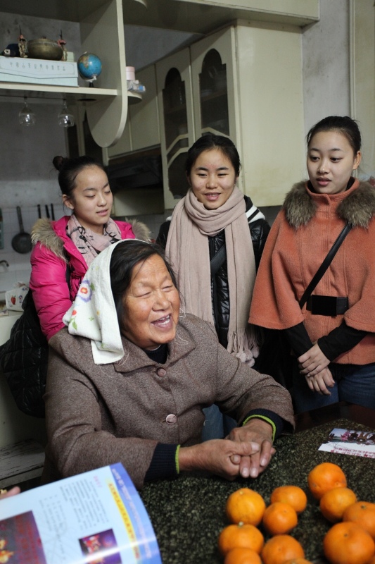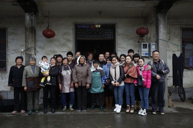 师生一行到达嘉善县丁栅镇沉香村,村里住着一位原生态歌手顾秀珍,她是当年唱田歌红遍大江南北的“顾家两姐妹”中的老二,而今的顾奶奶也已经74岁了。一进老奶奶家,印入眼帘的就是大墙上挂着两张奖状——“双十佳文明示范家庭”和“一九九五年首届‘万川杯’吴歌大奖赛二等奖”。老奶奶热情地捧出自家种的橘子,邀请同学和老师们品尝,在昏暗而拥挤的农村平房中,却洋溢着一片热闹喜庆。围坐下来,老奶奶开始和大家讲述自己年轻时参加比赛的场景,并为大家演唱了原生态嘉善田歌,“跌落声”“大头歌”“急急歌”等曲调被老人再度演绎,很难想象,那时年轻美丽,红遍大江南北的“顾家两姐妹”是如此朴素,也许正是这种朴实无华,这些原生态且富有民风民俗的艺术品、艺术形式,才得以真正保留,成为宝贵的文化财富。
