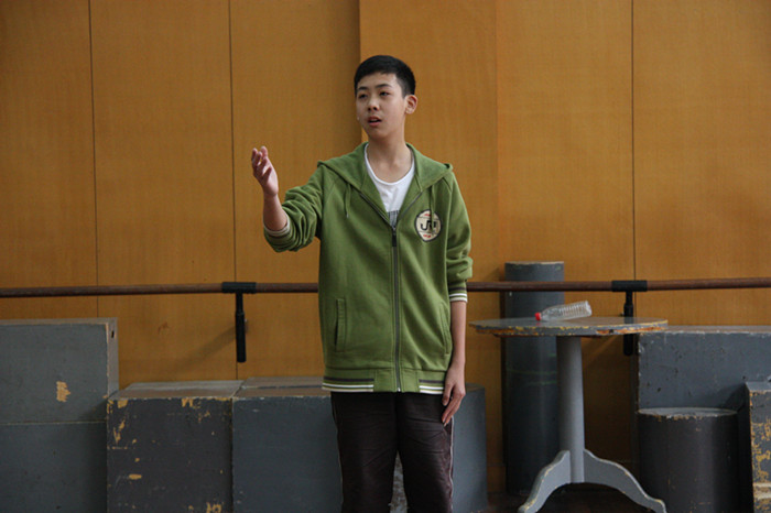 刚满十六岁的黄作灿自小学六年级起便开始“触电”,到目前为止,已经在《甄嬛传》、《美人天下》、《穿越时空的密令》等多部电视剧中有角色出演,在2012年红透半边天的电视剧《甄嬛传》中,他扮演了幼年时代十八阿哥。最近在横店跟孙红雷老师拍《一代枭雄》的戏,为了参加考试,特地向剧组请了假,赶到杭州。在考试前,他说:“略微有些小紧张,情绪有些高涨。等会儿要表演的是朗诵和爵士。”