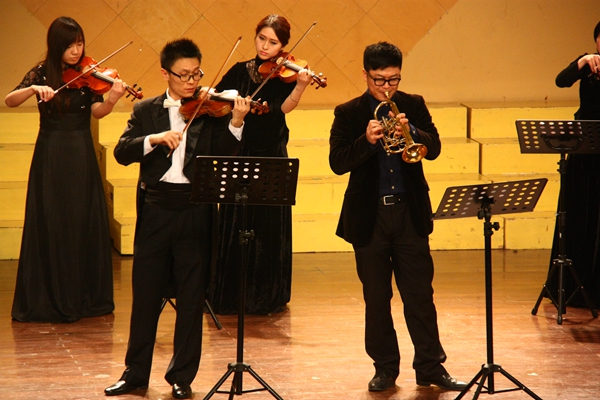 此次音乐会是音乐系在“2013-2014学年综合展演季”中的谢幕演出,众多精彩曲目在音乐厅再度上演。伴随着民族管弦乐合奏《我的祖国》响起,音乐会拉开了帷幕。愉悦心情的《赶街》,豪迈,大气的板胡独奏《花椰子》,热情似火的歌曲《卡门》选曲,都绝妙地传达了音乐艺术的无限魅力,令在场观众深深陶醉。《C小调双簧管与小提琴协奏曲》、《美人鱼桑巴》、《马丁灯》、《自由探戈》、《一步之遥》等曲目的旋律,回荡在音乐厅的每个角落。最后,音乐会在混声合唱《茨冈》和《为什么不尽情唱歌》的歌声中圆满落下帷幕。