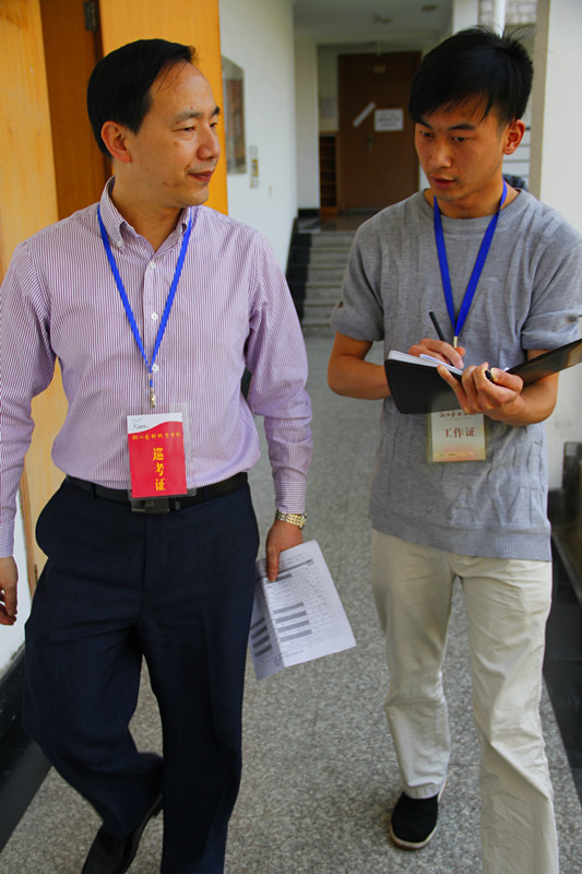 学院党委委员、纪委书记夏开堂巡视着每一个考场。接连两天,他都出现学院的各个角落,和考生、家长、老师在一起。夏书记忙碌地赶赴各个考场,边走边接受采访。他表示,这次附中招生,总体上很不错,覆盖的专业比较全面,计划招生学生303人,像舞蹈、影视表演这些专业,孩子们都很感兴趣,希望他们能够良好发挥,考出满意的成绩。