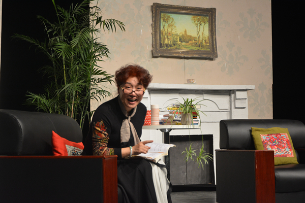这些由王苏精挑细选的一个个作品,都离不开“爱”这个主题,无不渗透着无形的“爱”。王苏以温婉知性、落落大方的亲和形象,用悠远绵长的声音,掷地有声地给大家带来一段段跃然眼前的品读,让在场的老师同学们纷纷潸然泪下。而她自己也在品读完每篇作品后起身擦拭她因投入而落下的泪。