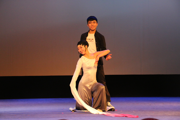 整场晚会贯穿小品、相声、歌曲、舞蹈,形式多样,热闹非凡。晚会在12广告班吴爽同学演唱的一曲《伤心的人听慢歌》中开始,即刻带动全场氛围。14服装设计班的杨赠琳、曹佳佳等人表演的《甄嬛传》重新颠覆了所有人的意想,别出心裁的服装和令人捧腹的角色反串引得观众爆笑连连。14舞美班周宇琼等人的表演的影子秀《风》再次带动全场氛围。13装饰班于奥林、俞会杰等人的诗朗诵《我的滑板鞋》《100块都不给我》,既诵出了磅礴气势,又咏出了幽默风趣。晚会还特邀越剧表演专业的两位同学深情演绎了一段《游园惊梦》,穿插的互动游戏环节也极尽幽默搞笑,吸引观众积极参与,台上台下互动频繁,其乐融融。