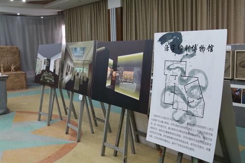 展览现场历史文化气息浓厚,充满了严谨肃穆的氛围,展品以博物馆实景还原和仿古实物为主,分成“博物馆设计作品展”、“墨彩无华”(博物馆绘画作品展)和“梦想钱塘”(六和塔微景观制作展)三个主题,分别陈列了博物馆设计图、古生物化石、仿古陶俑、国画、插画、微景观等作品。