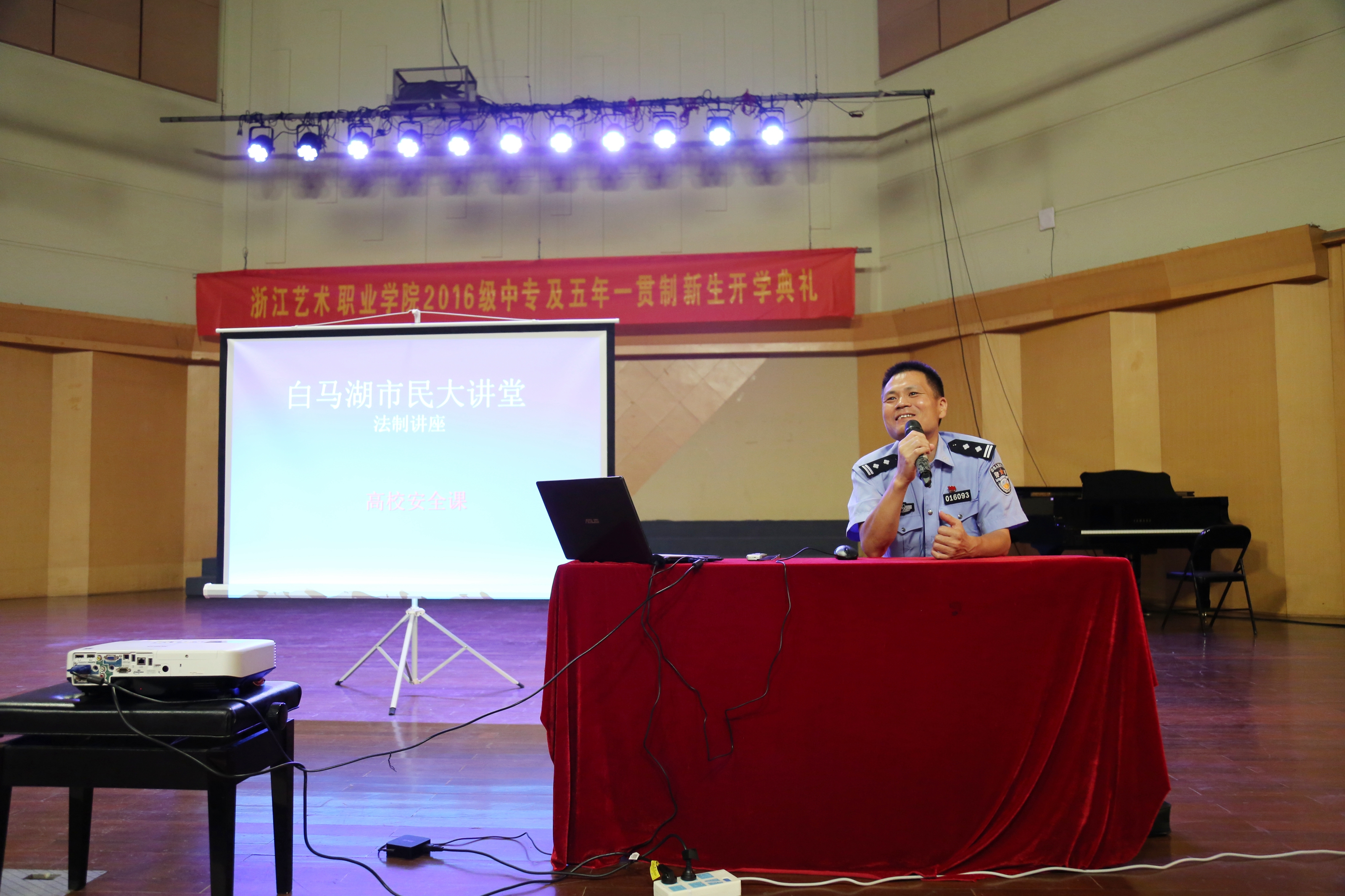 典礼之后,浦沿派出所的沈建松警官还生动形象地用实际案例向新生们传授了防盗、防骗等安全知识。