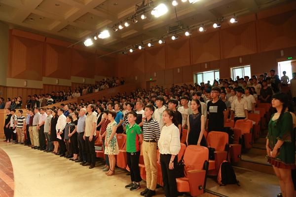 9月20日上午,浙江艺术职业学院2016级中专及五年一贯制新生开学典礼在院音乐厅举行,343名新生到场参加,副院长沈恒及各系部负责人出席,典礼由学生处附中学生科科长刘梦伟主持。典礼在雄壮的国歌声中拉开序幕。同学们和老师们全体起立,齐唱国歌,嘹亮的歌声响彻整个音乐厅。