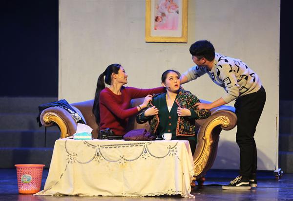 上海戏剧学院教授张金娣、兰州军区文工团一级演员孙学增、钱江浪花艺术团总经理陆湘汉、戏剧系党总支副书记李旭芳、表演艺术专业带头人荆芳参加研讨,对两个作品有关人物行为逻辑、性格刻画等方面提出了意见和建议。由2012级表演艺术五年一贯班学生创作并表演的原创作品《寝室“味道”》,其主题、形式新颖,在表演中融入了锣鼓经、戏曲身段等表现形式。这段时间,同学们夜以继日、紧张排练,在剧本上和表演上及时调整,一次次地完善提高。几位参赛同学说,“很高兴能参加省大艺节,我们要尽自己的努力,争取在展演中发挥好。”
