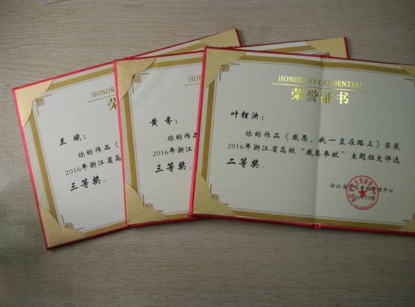我院学生在2016年浙江省高校“感恩•奉献”主题征文活动中喜获佳绩