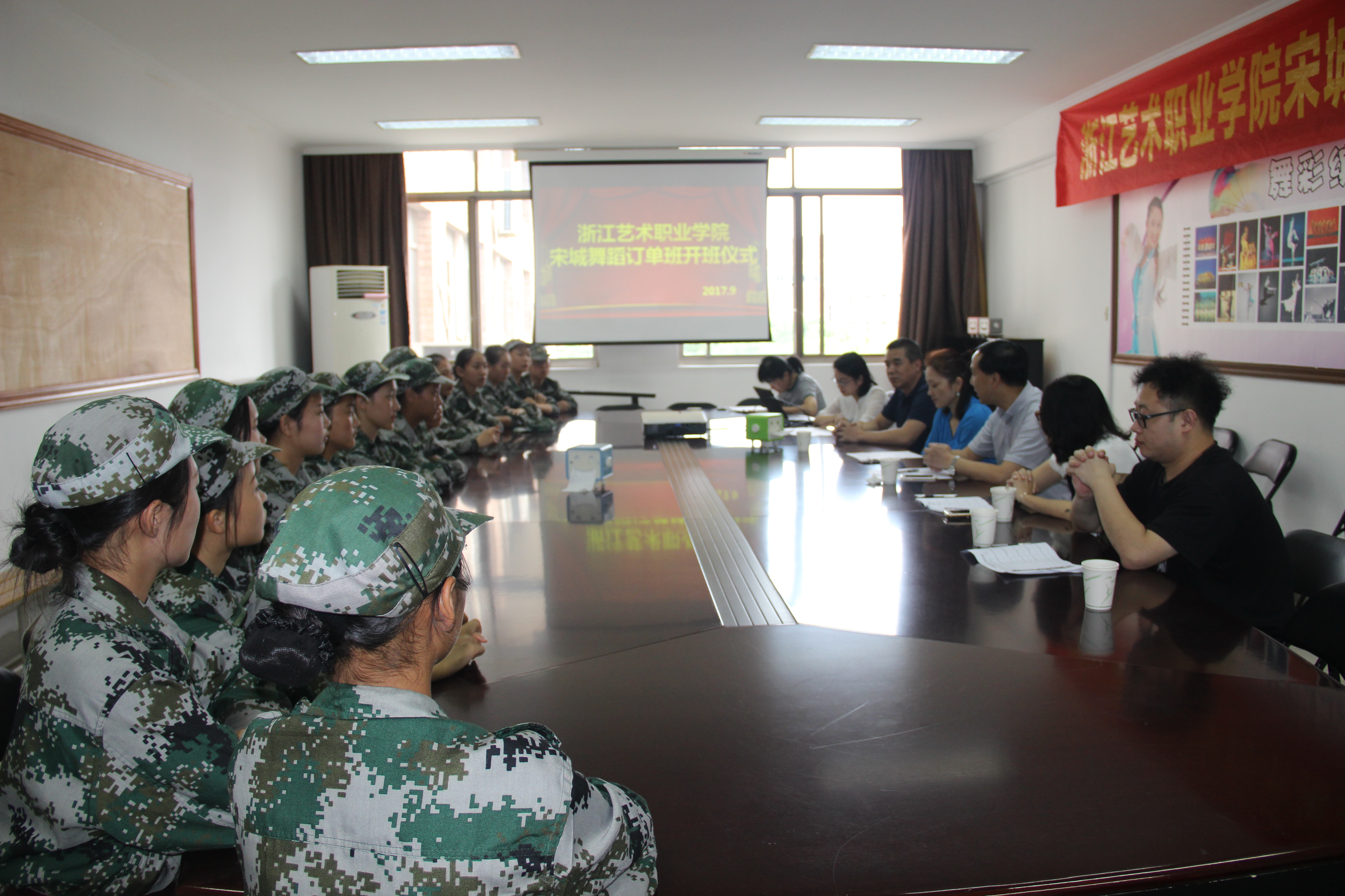 9月15日下午,浙江艺术职业学院舞蹈系宋城订单班在4409会议室举行开班仪式。学院党委委员、副院长夏开堂出席并发表讲话。宋城集团人力资源部副总经理王玲飞、舞蹈系副主任曹亮红、舞蹈系党总支专职副书记吴颖、系主任助理王设忠参加及宋城订单班同学参加。