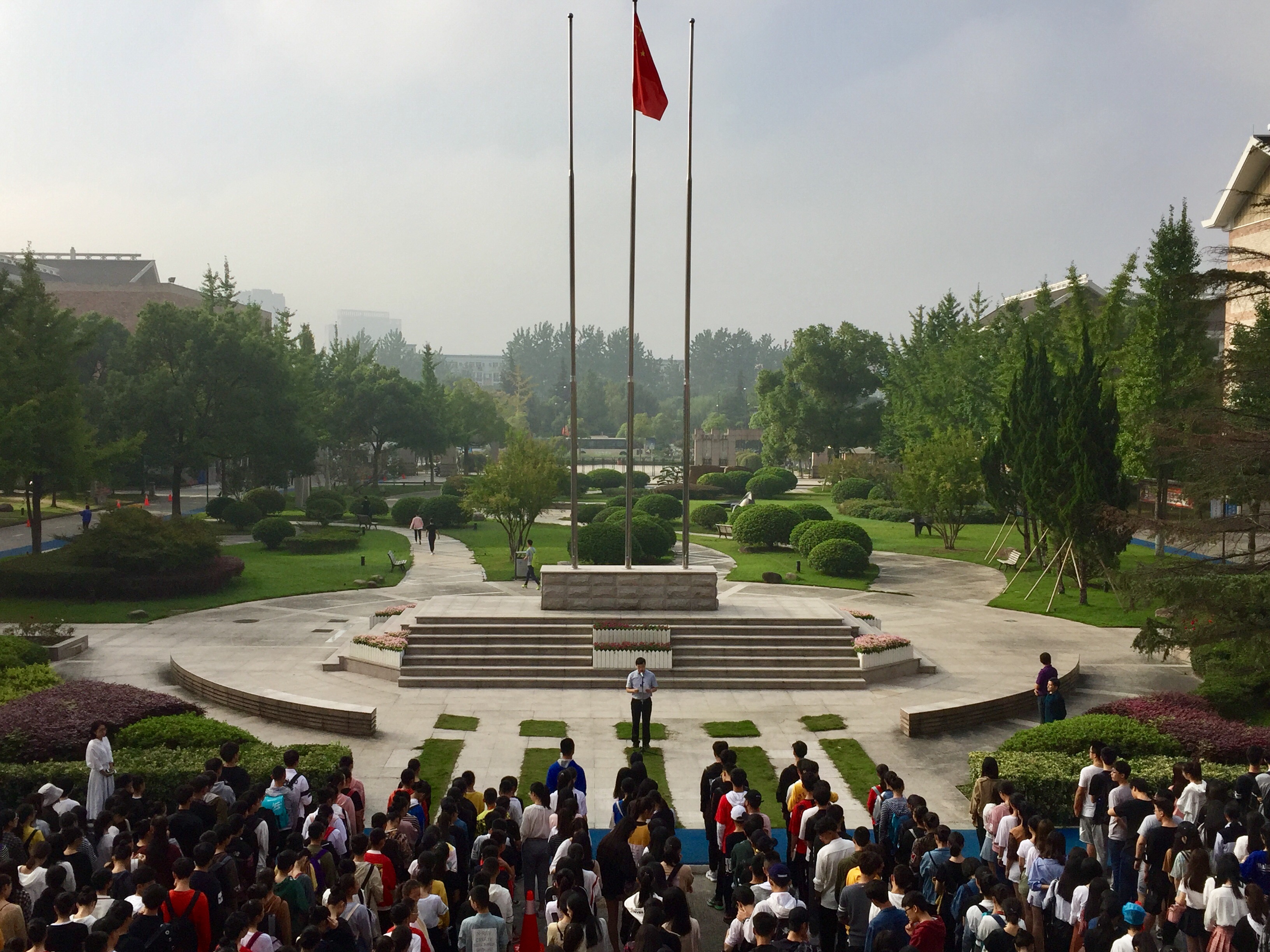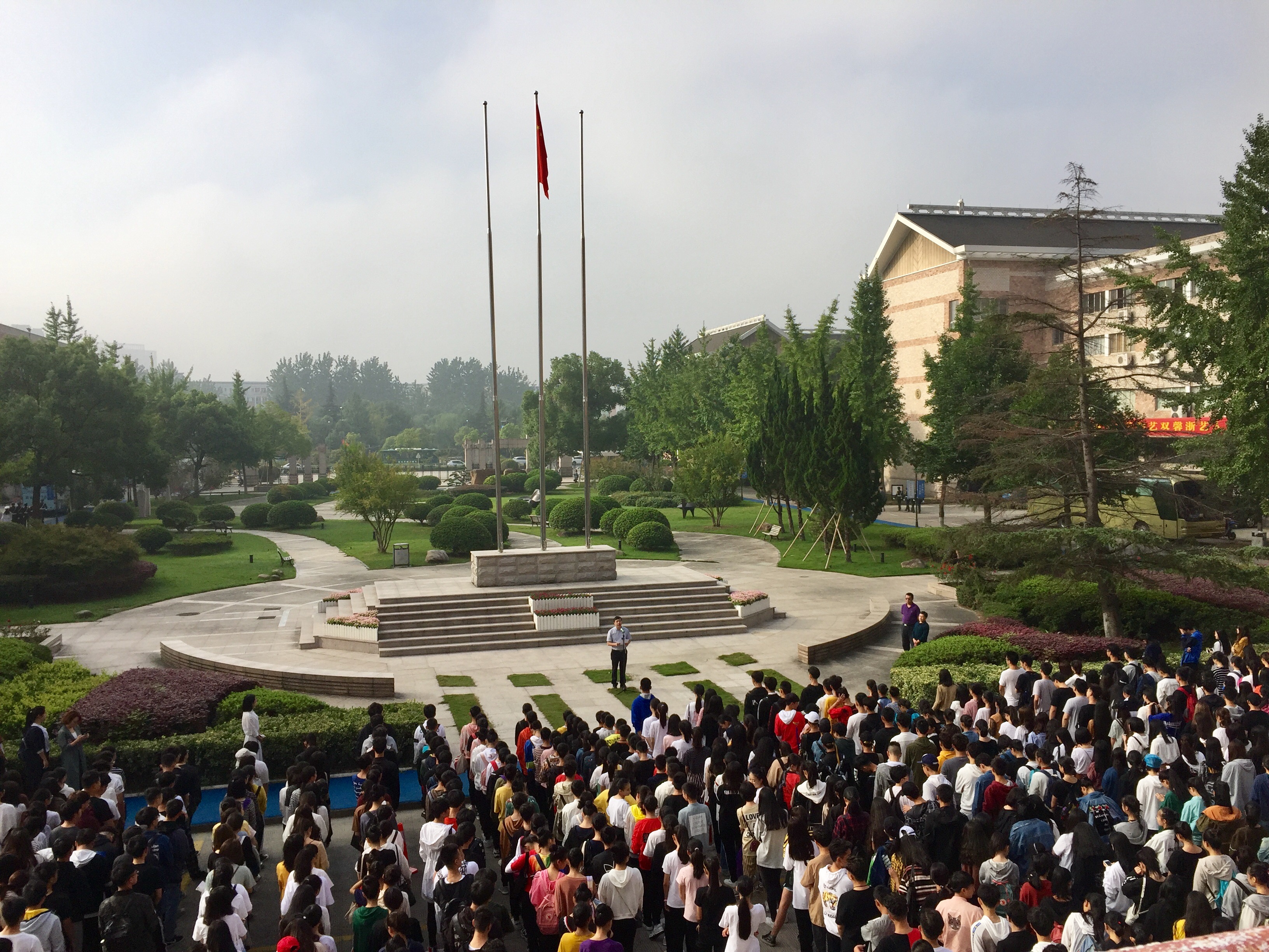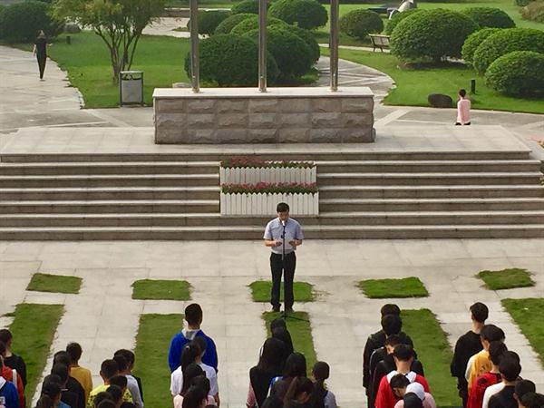 10月9日上午,2017-2018学年首次升国旗仪式在学院中心广场举行。院党委委员、副院长夏开堂出席仪式并讲话,宣传部、教务处、各系党总支、团总支负责人和1000余名2017级大一新生代表参加了升旗仪式。学工部(主持工作)副部长陈毅主持仪式。