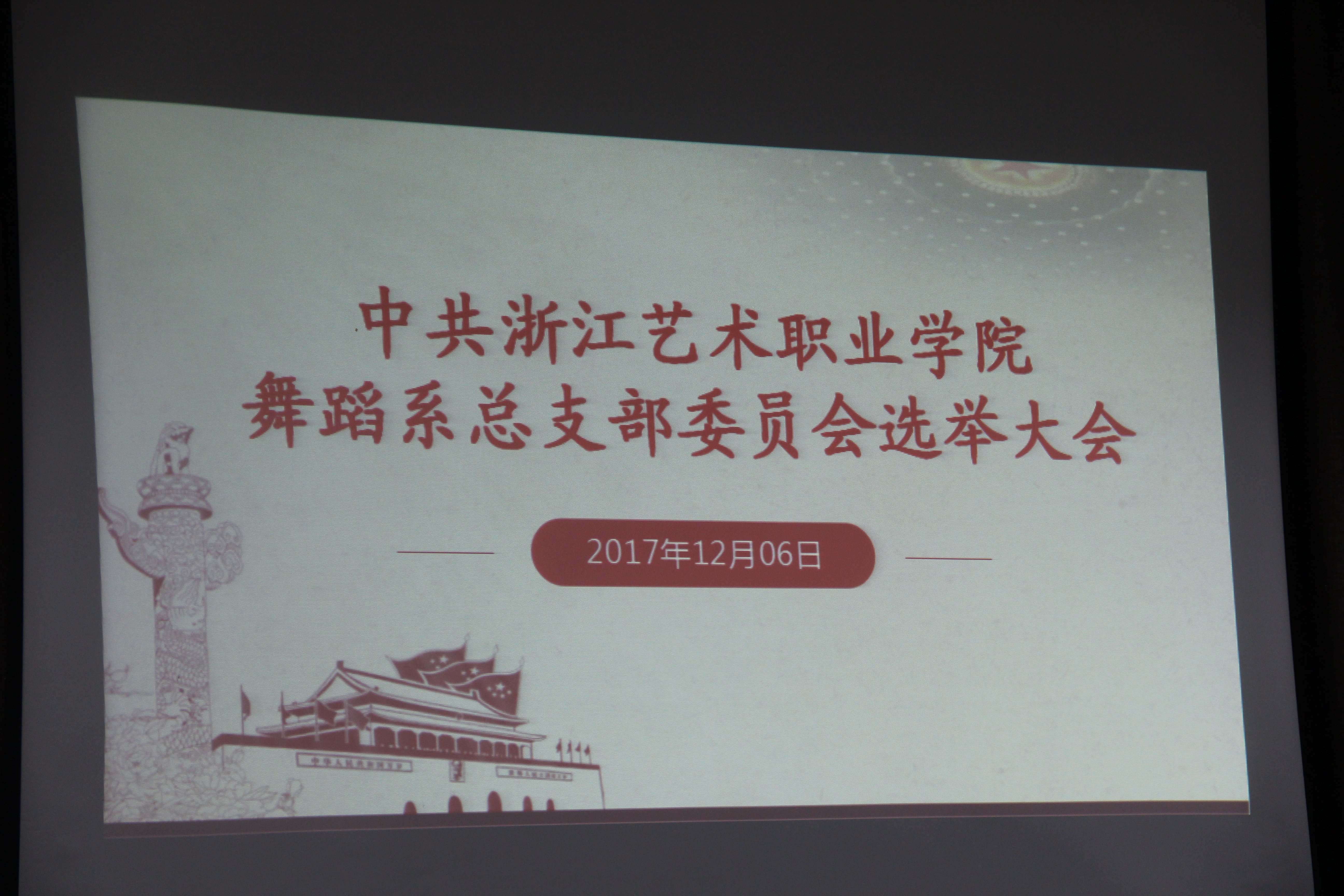 根据《中国共产党章程》和《中国共产党基层组织选举工作暂行条例》的有关要求,结合《中共浙江艺术职业学院委员会关于做好基层党组织换届选举工作的意见》,12月6日,舞蹈系党总支在4409会议室举行全体党员大会暨总支委员会换届选举大会。院党委委员、副院长章轲,院组织部副部长汪琳出席会议。