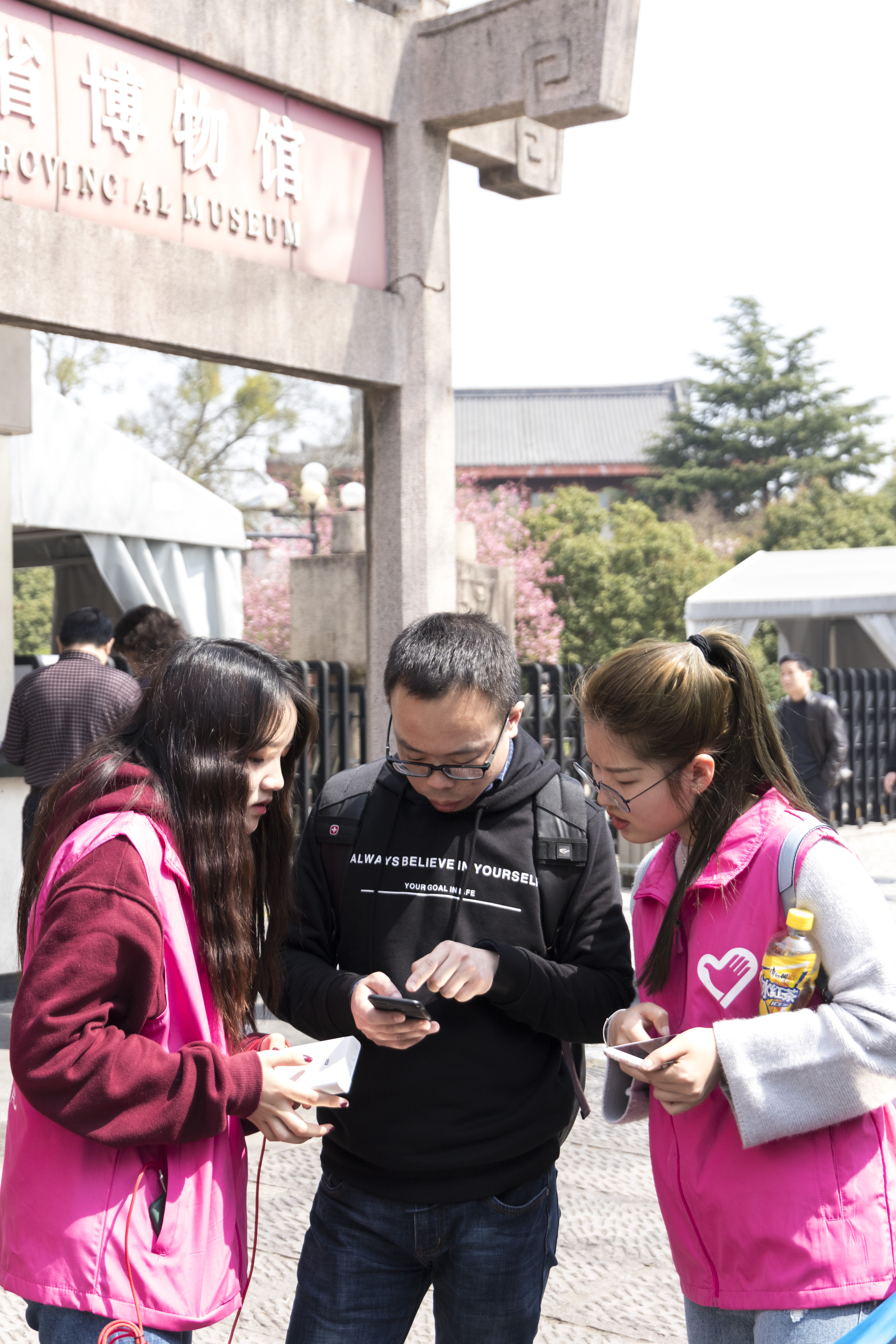 志愿者们分成馆内馆外两个分队。一队在馆内听从博物馆工作人员任务分配,做来客咨询、问卷调查、展览讲解、馆区引导等工作,另一队在馆外周边的三个公交站点协助公交公司工作人员维持秩序、为游客指路、引导智能支付等工作。当天参与活动的同学们都表示度过了愉快而充实的一天,觉得这样的志愿服务很有意义,希望通过他们的携手助力,能让游客在美丽的西湖边、底蕴深厚的博物馆内度过美好时光。