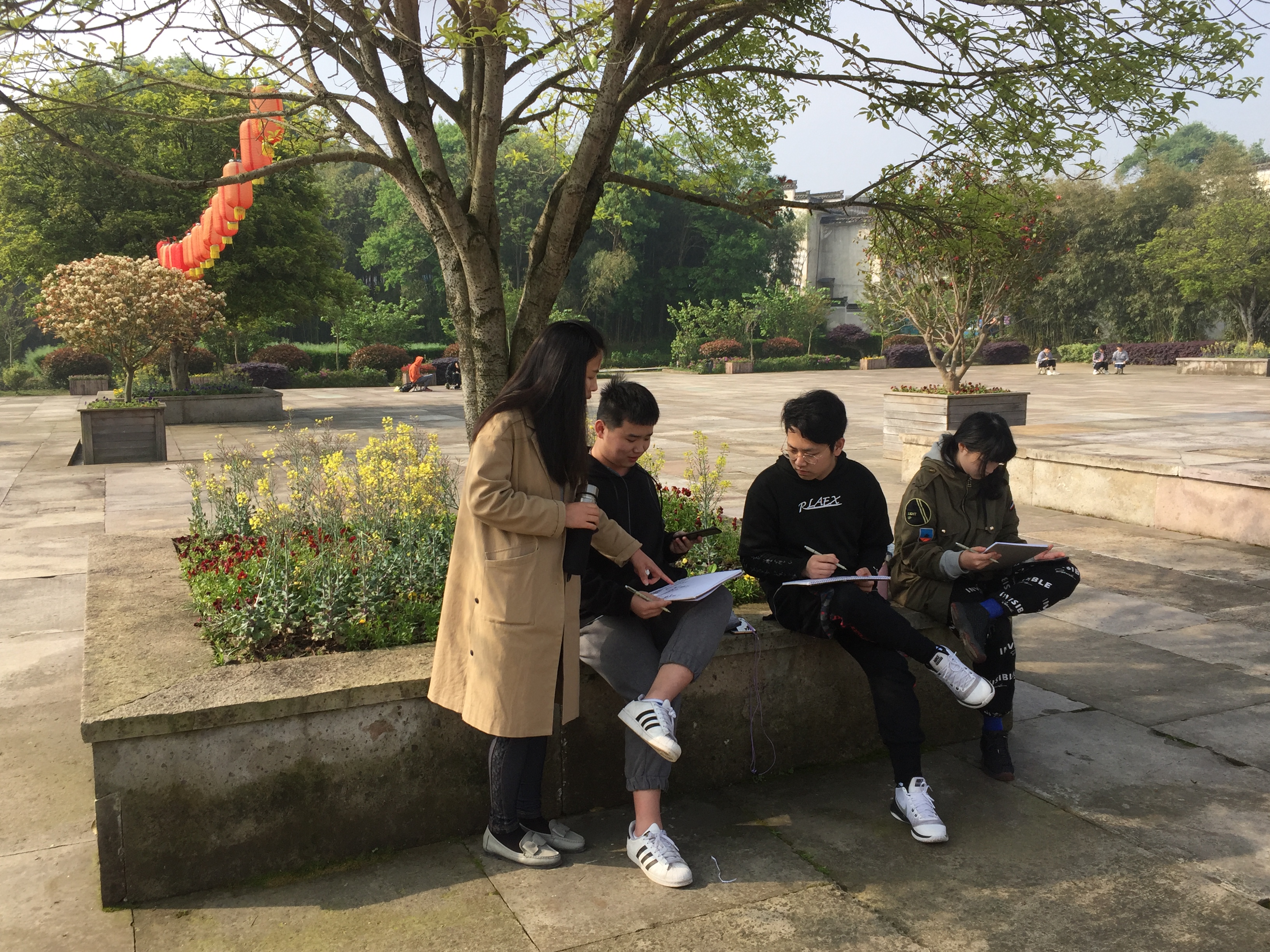 4月16日上午,美术系广告设计与制作专业、环境艺术设计专业同学携手浙江商业职业技术学院视觉传达专业同学共赴安徽歙县唐模写生基地,进行为期两周的校外写生考察实践。