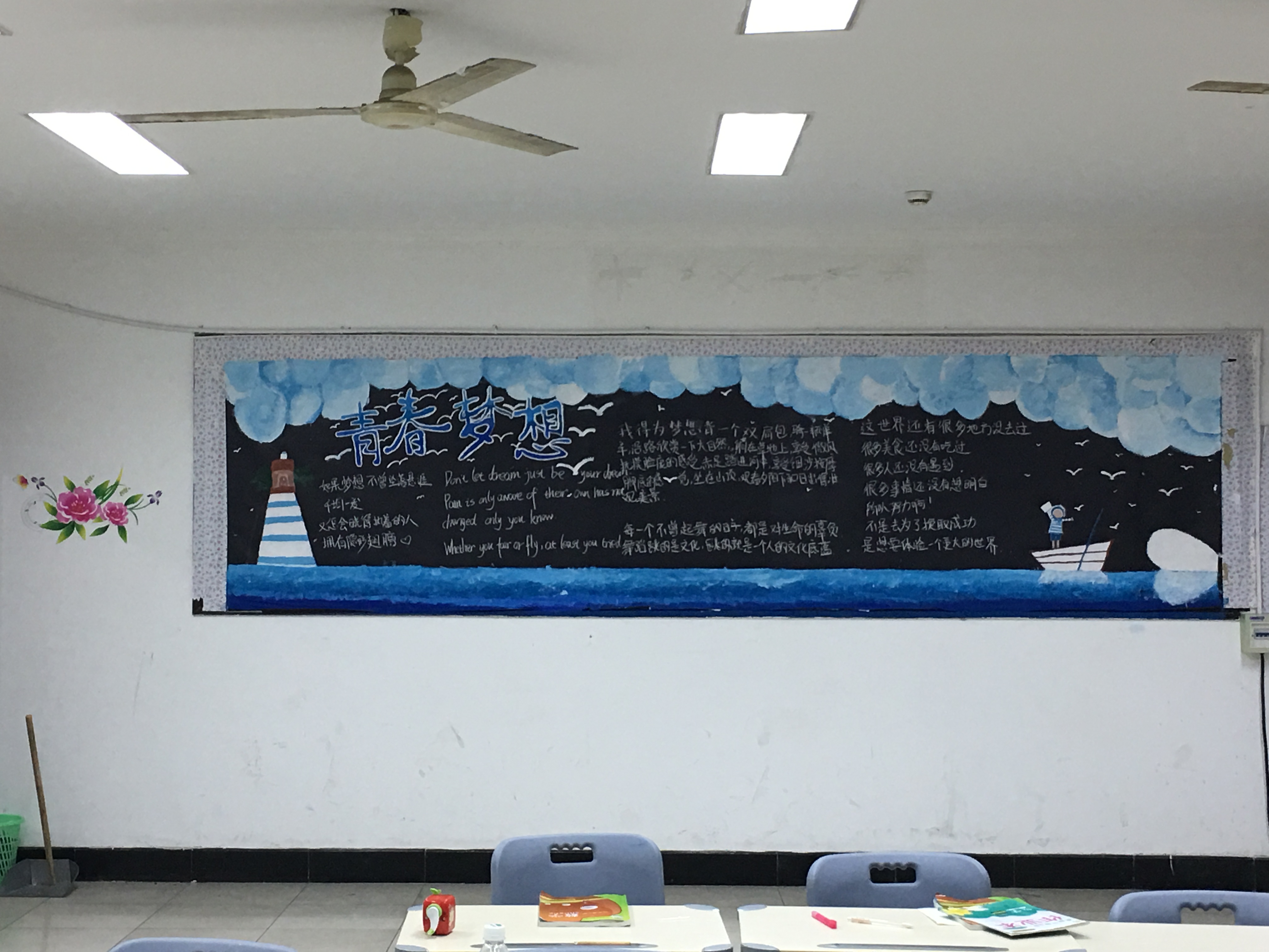 本次活动自开展以来,得到全校各系、各班的积极参与,同学们利用课余时间美化布置教室,创造怡人的学习环境,营造良好的教室文化。有的班级把“勇于追梦,勤于圆梦”的青春志向画成板报予以展示,有的班级将“班级公约”上墙入心,有的班级把读书角、学习心得、摘抄笔记布满整个教室,还有的班级利用将废弃物再美化衍生出新的装饰物品……各系各班通过板报、墙体美化等形式,既强调创意,又倡导环保节约,还关注人文理念,体现出独特的班风、系风、学风。