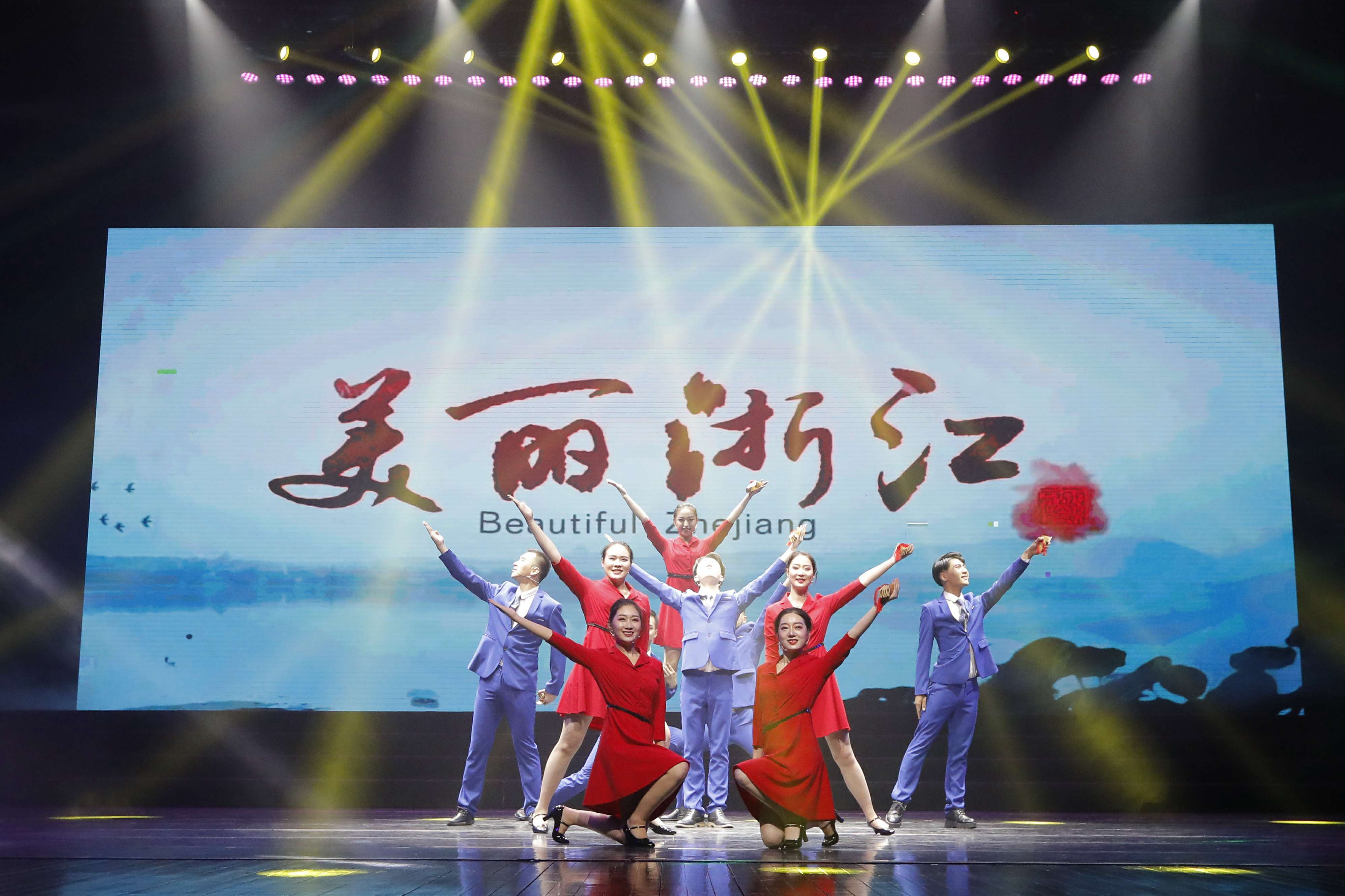 开场短视频《阳光下的我们》带观众熟悉了16级表演艺术班三年来的专业学习、校园生活和社会服务,德智体美劳的全面发展可见一斑。独舞《风》用曼妙的舞姿拉开了整场节目的帷幕。群舞《青春纪念册》、原创相声《如此创新》、原创肢体情景短剧《时光·剪影》、原创音乐情景表演《我》、原创情景朗诵《心中的太阳》、群舞《Love in the dark》、改编默剧《好先生》、原创情景快板《别样风采看浙江》、舞蹈串烧、原创综艺表演《江南·韵》,同学们用不同的表演艺术展示专业特长,精彩纷呈,掌声和叫好声不断。男声独唱《我爱你中国》,由“新松计划”浙江省青年歌手大赛铜奖得主张欢杨倾情演唱,抒发浙艺学子的爱国情怀。 入选2019年国家艺术基金小型剧(节)目初选作品的原创小品《别》,重现了战火中的青春、爱情和牺牲,感人肺腑。最后全体同学合唱《彩虹》,三年浙艺求学的舞台即将拉上帷幕,看到的是同学们充满希望的未来彩虹,艺术人生的彩虹。“阳光蚂蚁登山队”串联了整场演出,用他们的实际行动践行了不怕困难、团结协作、勇攀高峰的精神,这也是老师对同学们的期望,希望他们能更好地认识世界,认识自己,做一个有正能量、有情怀、有担当的人,去寻找到自己的幸福生活。