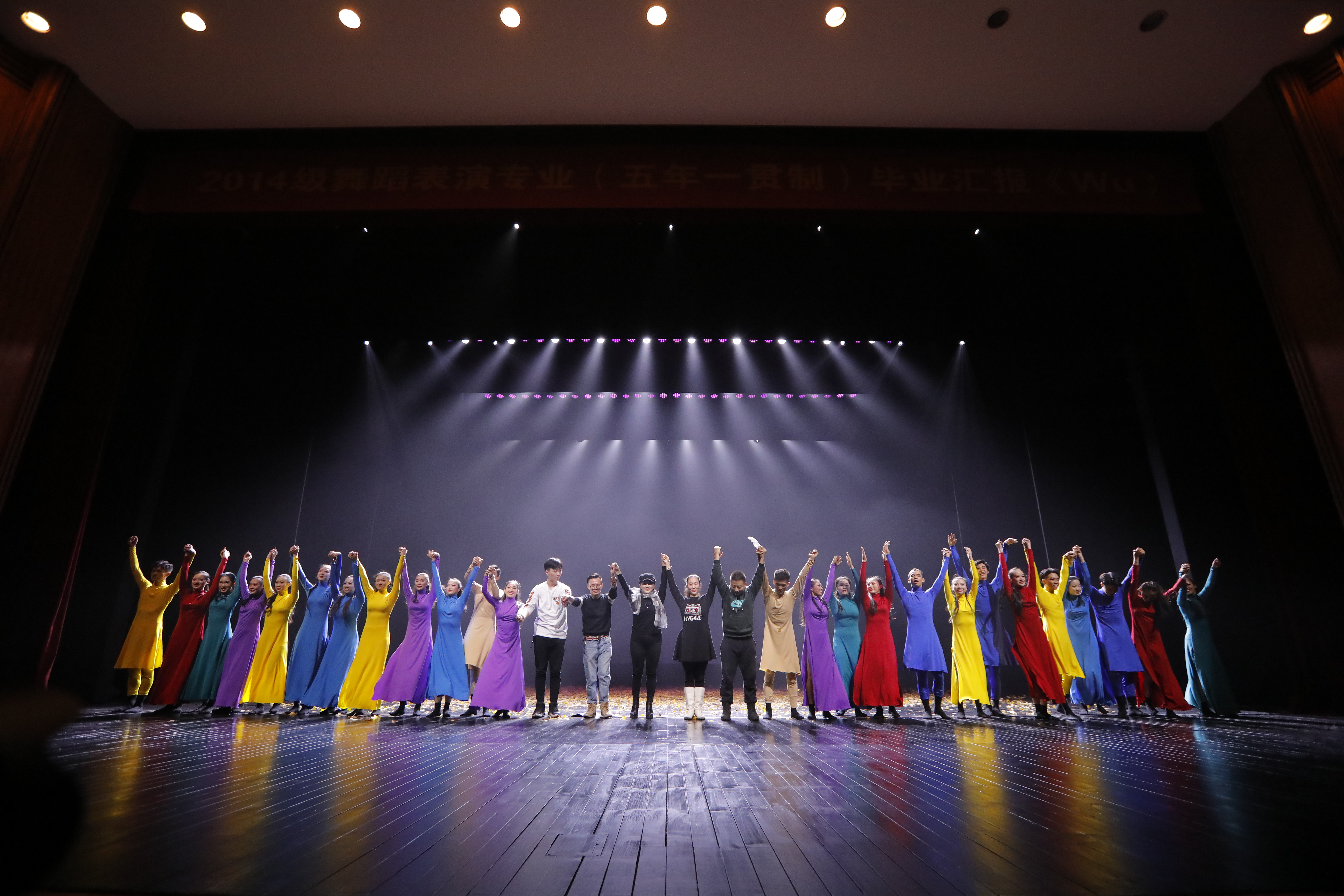 12月11日晚,浙江艺术职业学院舞蹈系14级五年一贯制舞蹈表演班毕业汇报《WU》在实验剧场上演。“WU”是个拼音,也是个象征符,它可以代表五年、舞蹈、舞台,亦或是同学们的感悟。