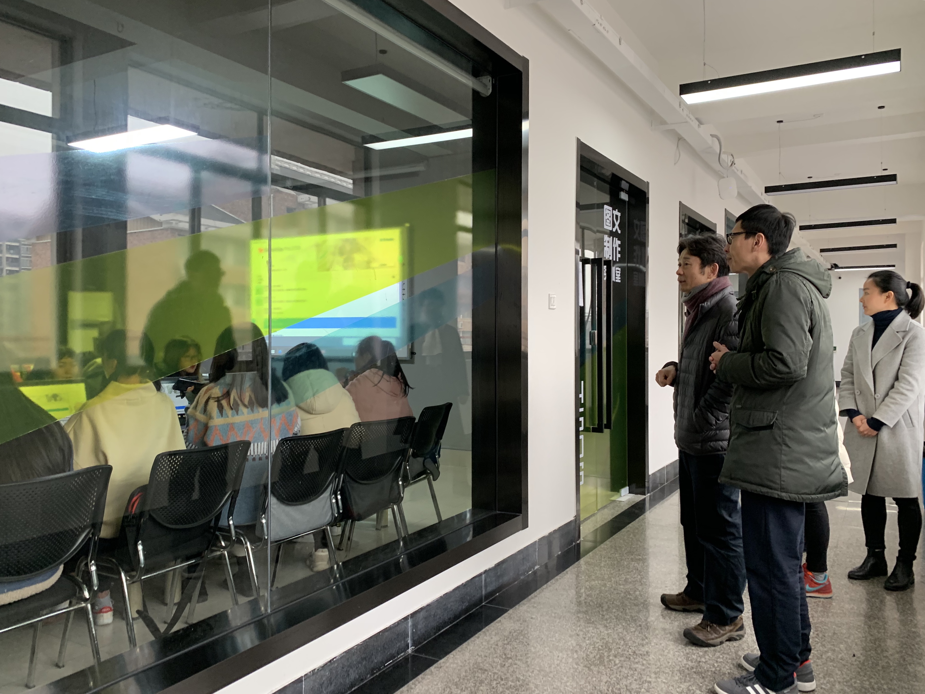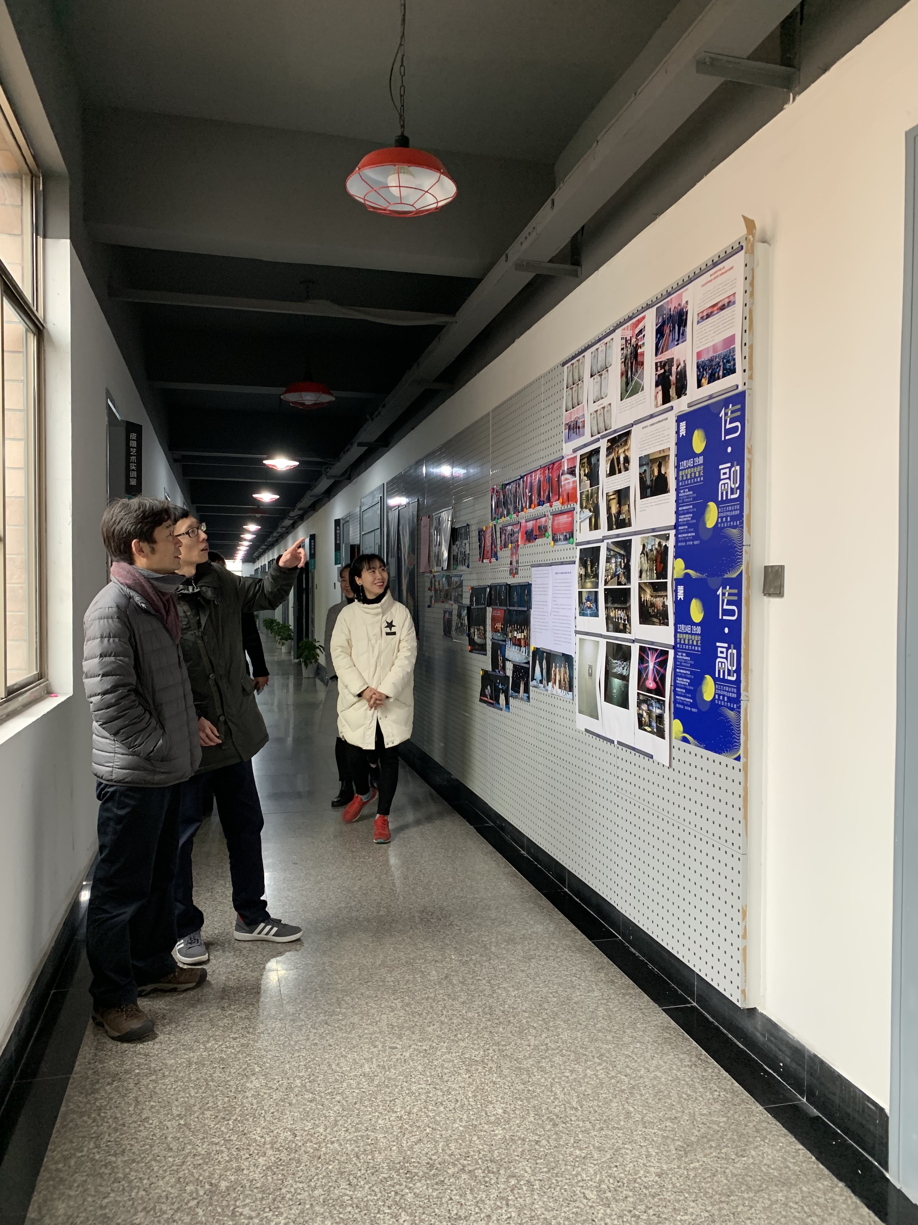 当天,浙江商业职业技术学院艺术设计学院副院长周保平老师一行也来到美术系,关注着同学们的学习情况,参观了美术系新改造的实训室,与美术系的老师们一起座谈交流。