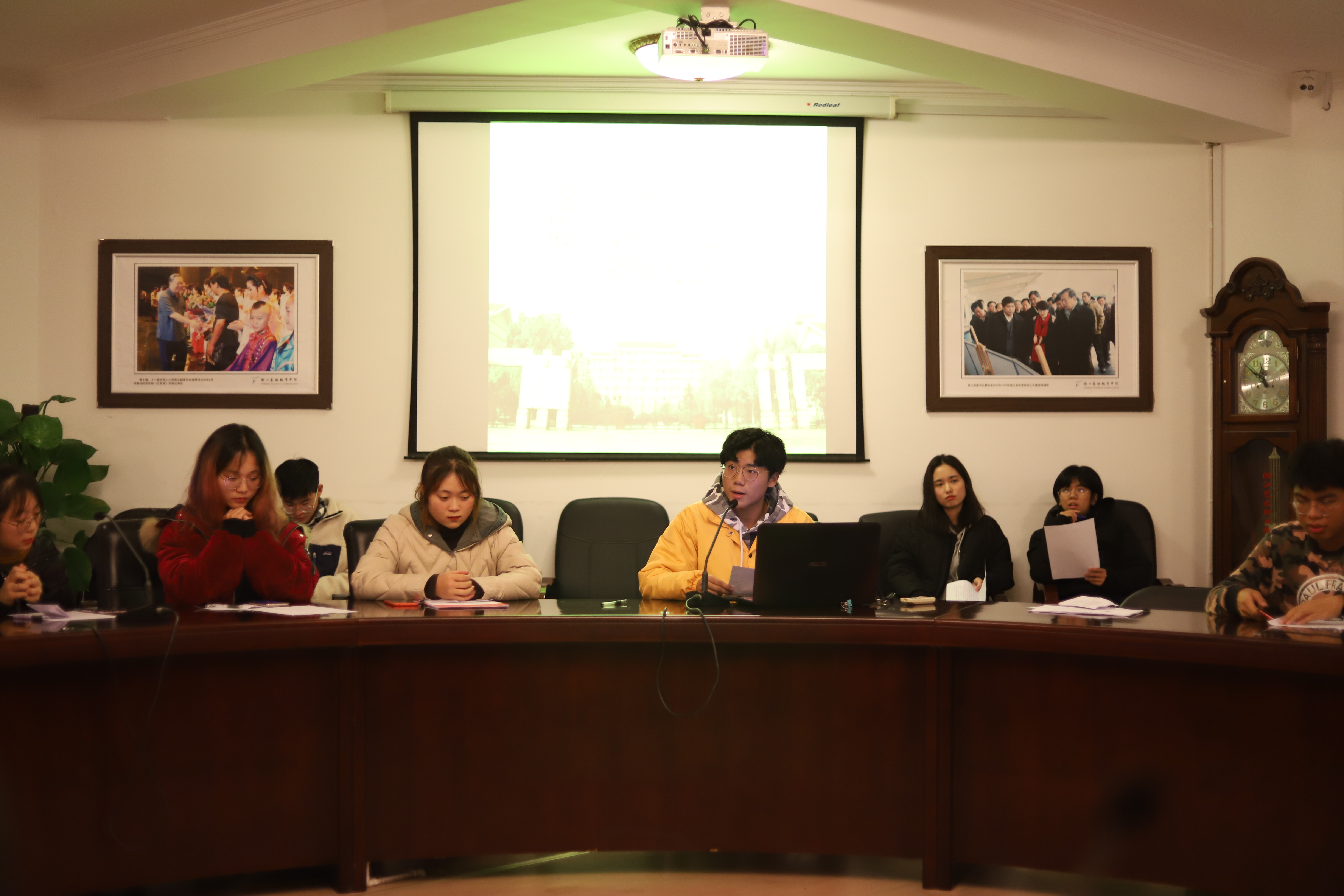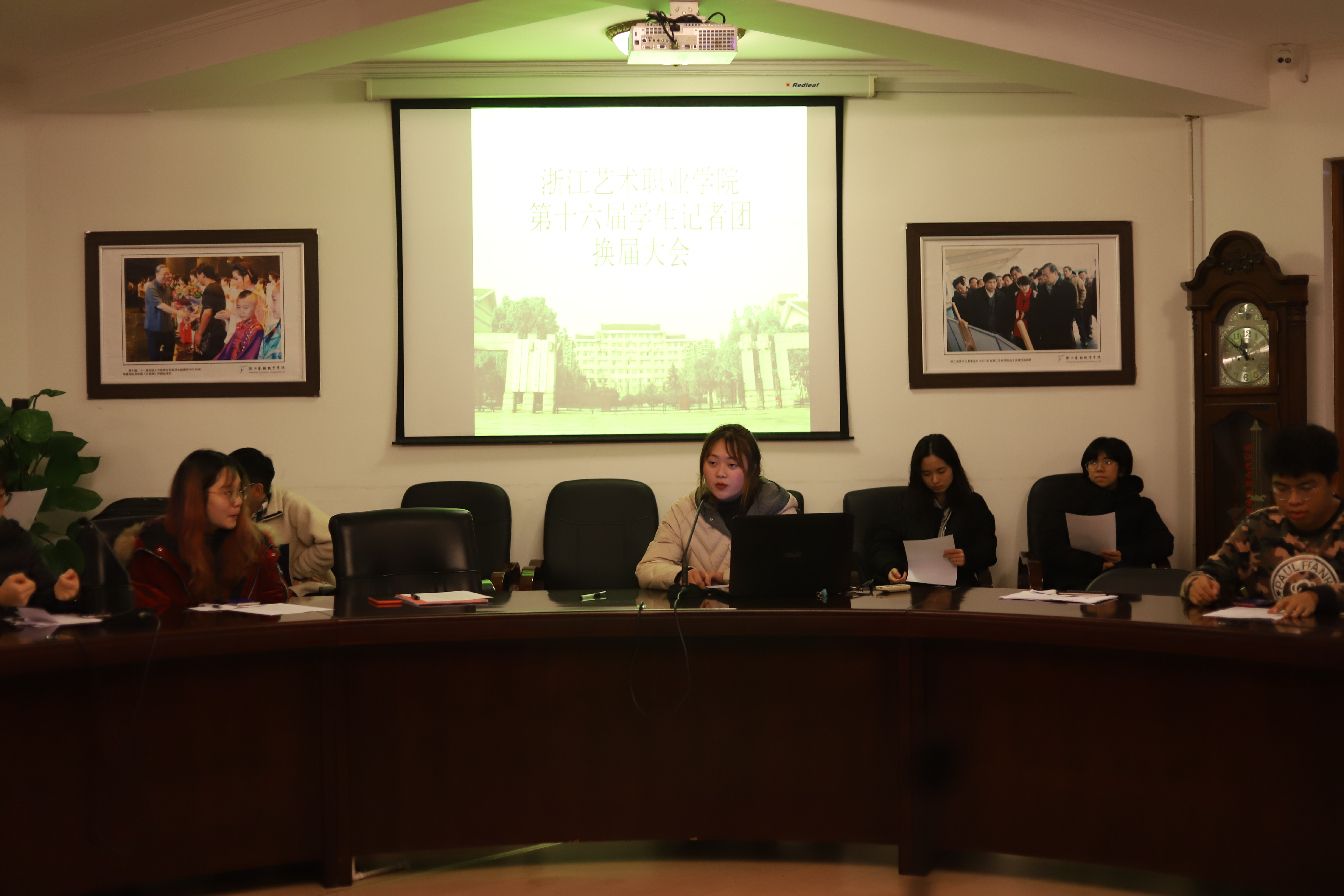 通过竞聘和评议,最终陈彦君担任团长,孟亭担任首席记者,郑添引、李佳燕担任副团长,曹涵笑、傅于轩、杨泽宇、李俊伟、何懿欣、蔡尧、王丽冰、龙俊、吴静、王倩芸等同学分别担任记者团各部门负责人。