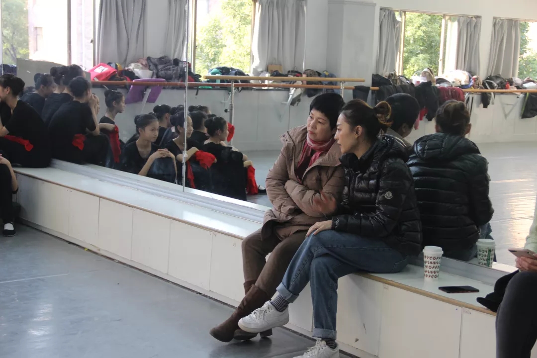 周萍来到舞蹈课堂,与同学们面对面。她亲自指导学生的身法手势,甚至眼神她都要求学生精益求精,准确表达。