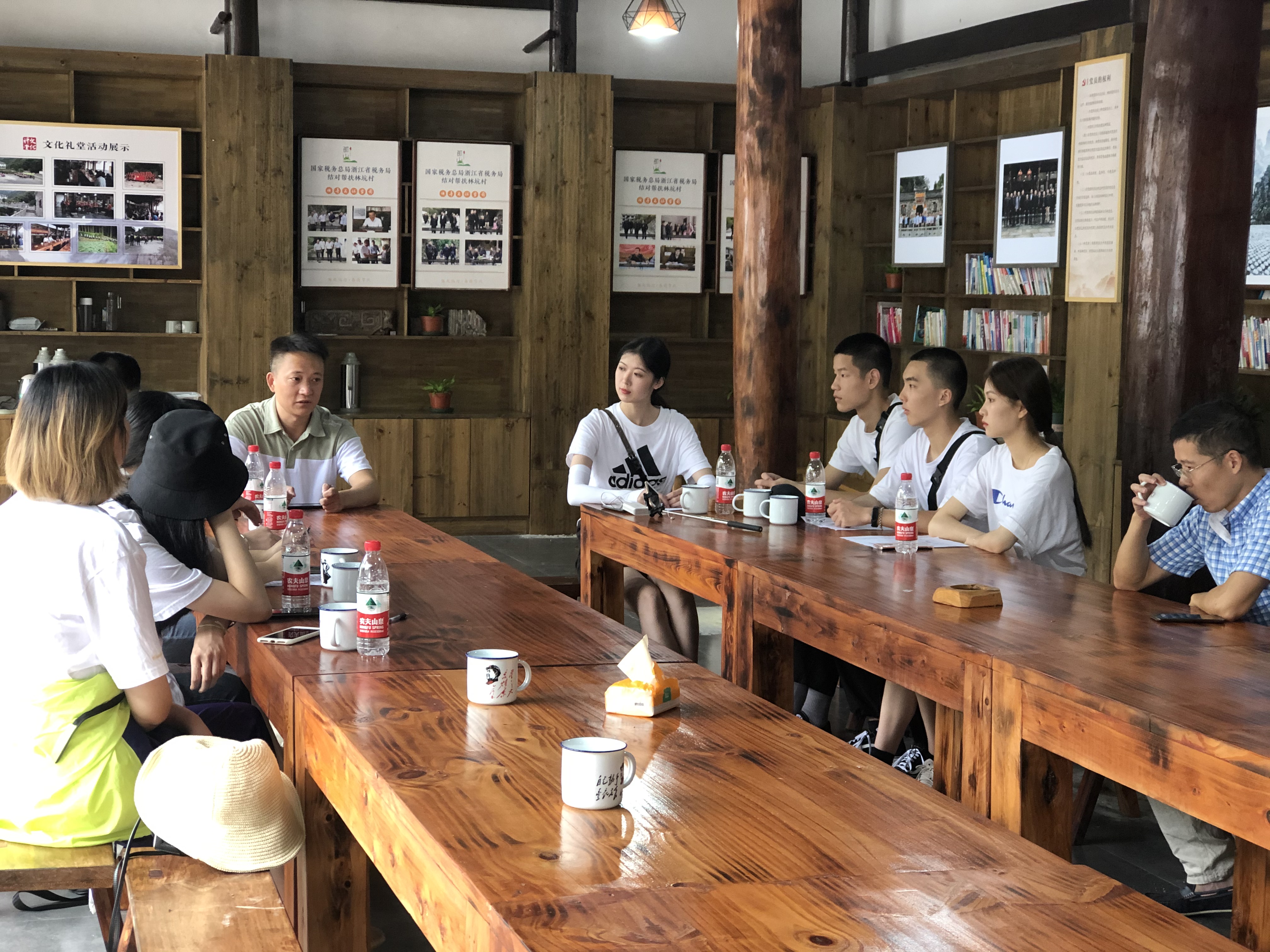 师生们到达仙居横溪镇,顾不上休息,马上组织开会讨论,与省文化和旅游厅派驻仙居县横溪镇垟庄村农村工作指导员颉顺虎了解直播村子的相关情况,查阅资料、明确直播流程、打磨脚本、细化分工。