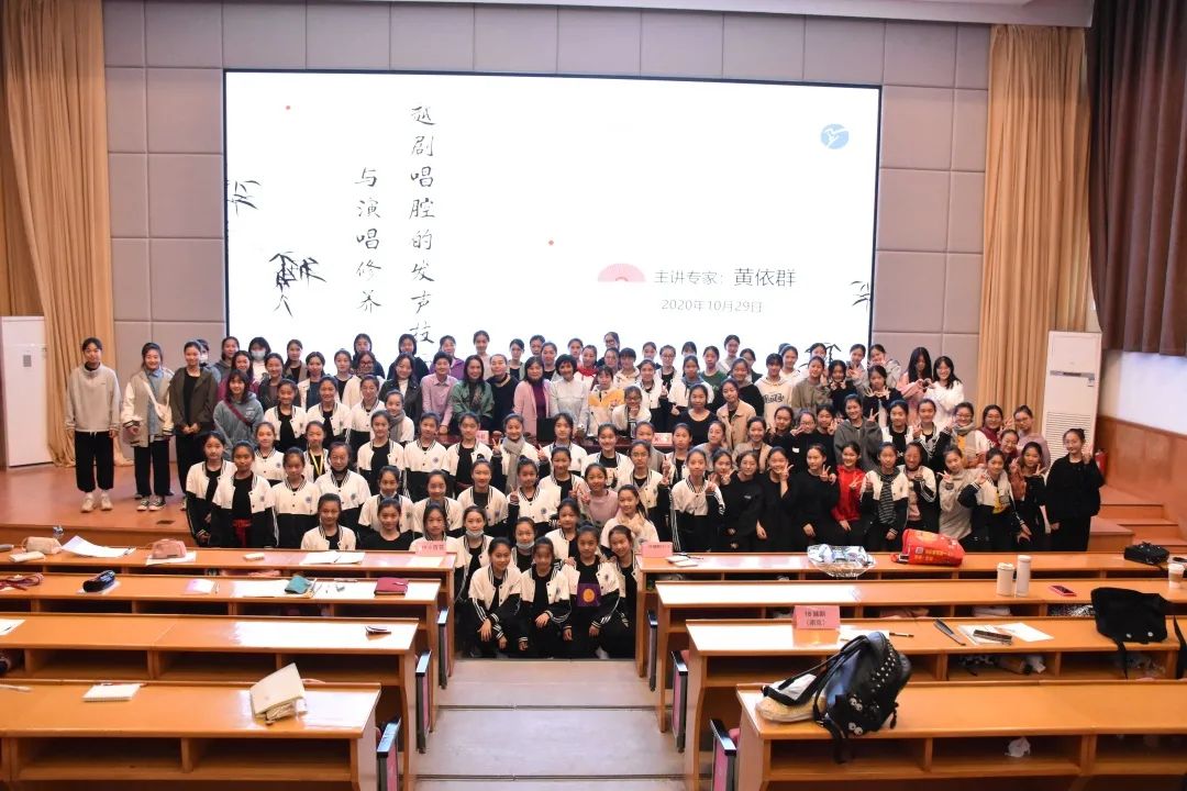 1029日,浙江艺术职业学院戏曲学院举行“梨园大讲堂”第二讲——黄依群教授《越剧唱腔的发声技巧和演唱修养》讲座。戏曲学院全体学生到场聆听。