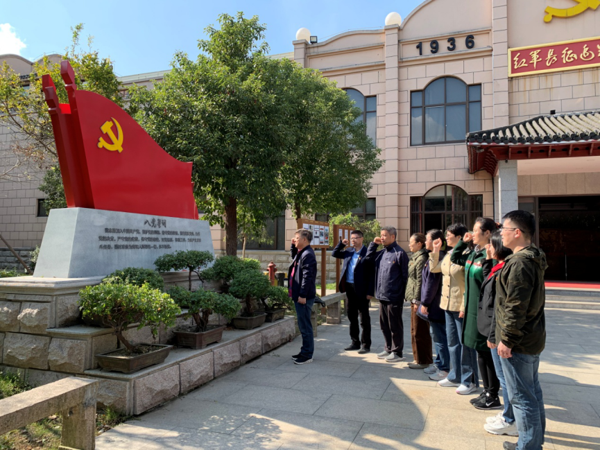 参观完红军长征追踪馆后,两个支部的党员们面对党旗,在科研处创作中心支部书记高澄明带领下庄严宣誓,重温入党誓词,使党员们进一步增强了党员使命感、责任感和荣誉感。