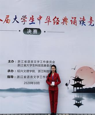 近日,浙江省第八届大学生中华经典诵读大赛在绍兴文理学院落下帷幕。浙江省大学生中华经典诵读竞赛是由省语委、省教育厅联合举办A类学科竞赛项目。该竞赛旨在贯彻落实习近平总书记关于传统文化教育的系列讲话,进一步落实全国和全省高校思想政治工作会议精神,在全省高校弘扬中华优秀传统文化,培育和践行社会主义核心价值观,提升大学生的汉语口语表达能力,引领大学生阅读中华经典诗文。