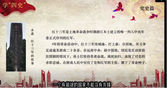 学生党员戚晓凡表示,自己花了很多时间去深入了解和学习“四史”,查阅较多的资料,结合了浙江现状来进行讲解,也结合了自身作为当代大学生该如何践行使命担当。在观看本次微党课的展示中,许多同学的授课形式和内容非常丰富,结合自己的切入点也比较新颖,给我之后制作微党课提供了许多新思路。作为学生党员,我们应该加强“四史”学习,以史为鉴,也应该明白,作为“生在新中国、长在红旗下”幸福的一代,也应该为这个时代奉献自己的力量。