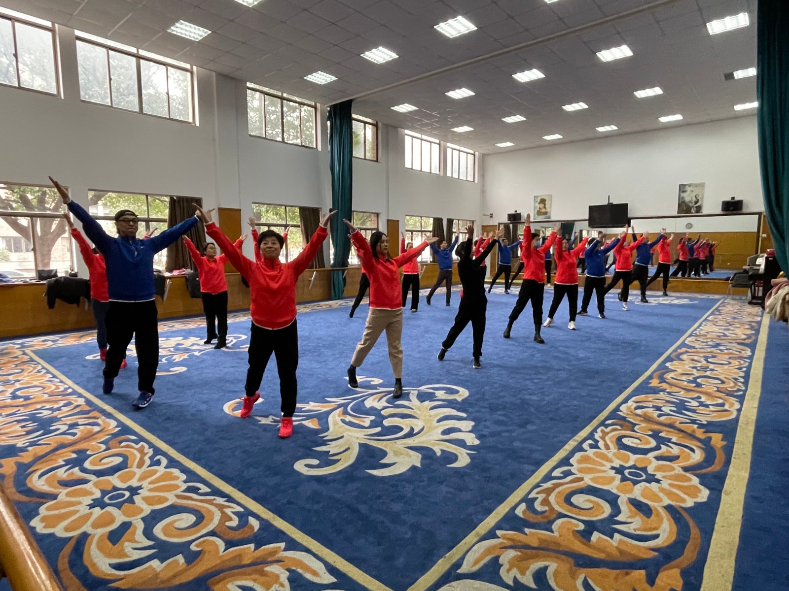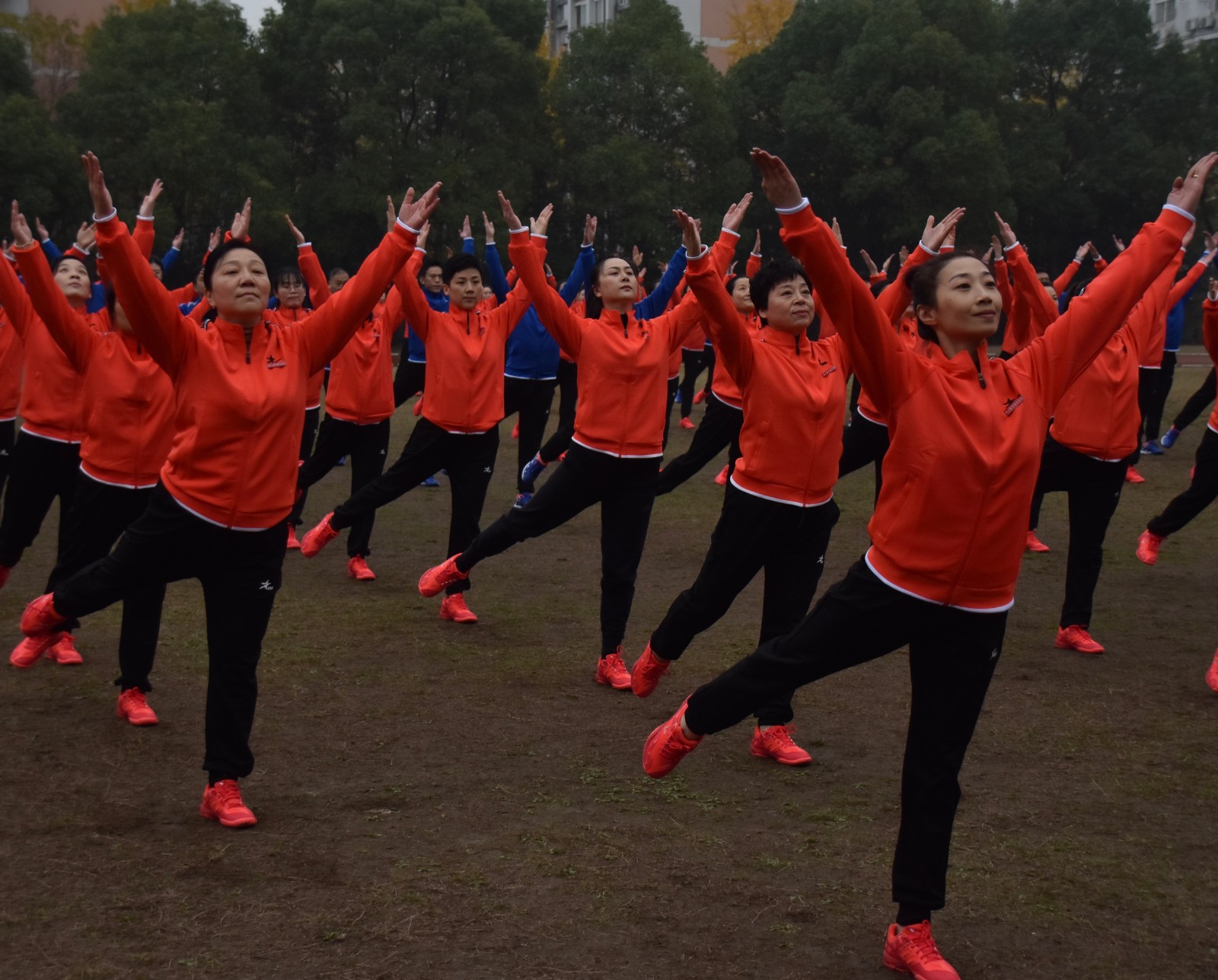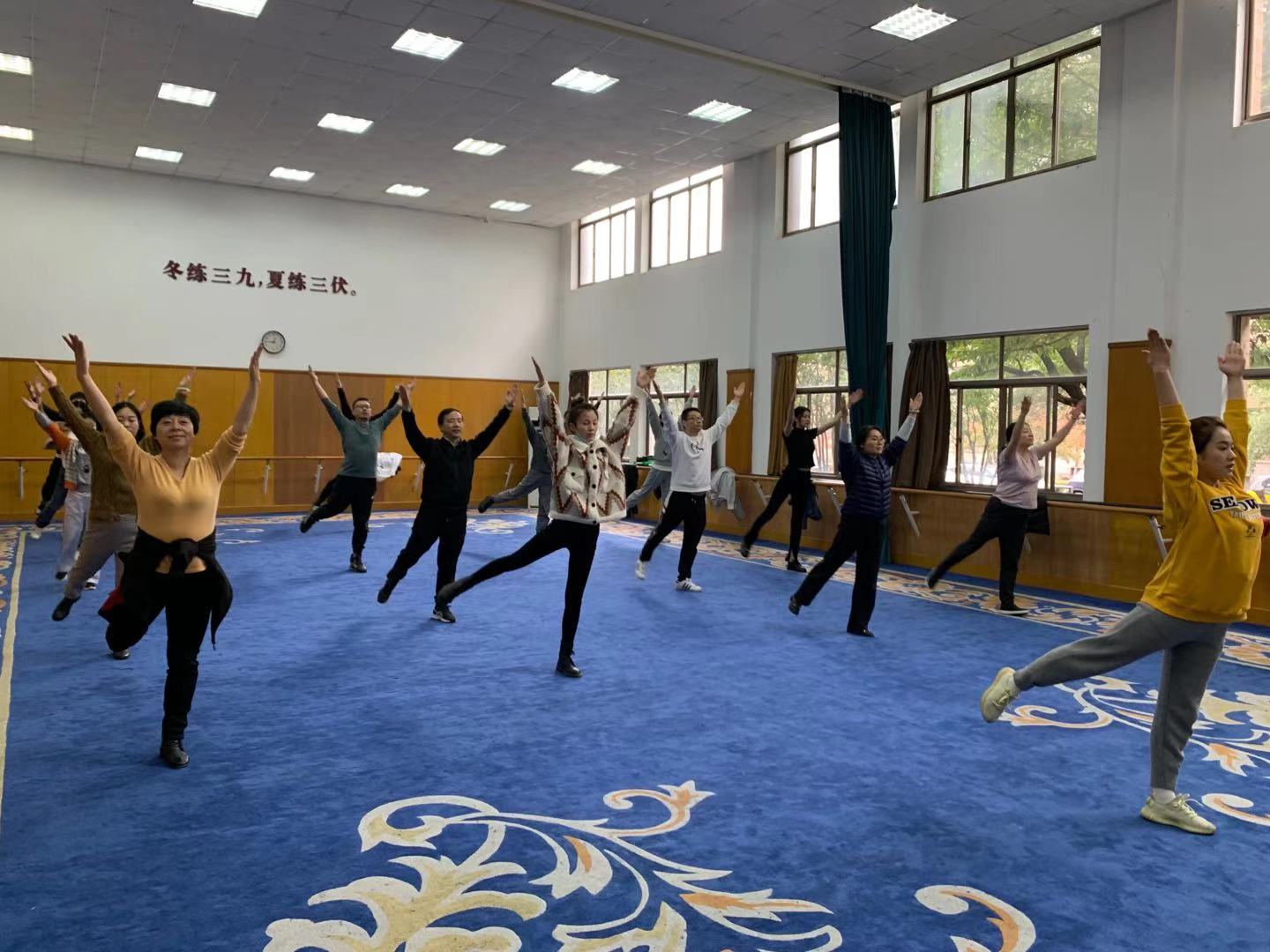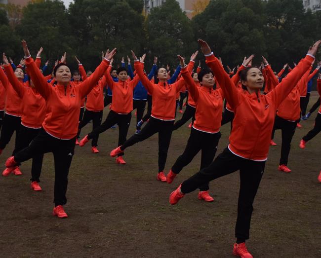 瑟瑟寒风挡不住老师们的激情。戏剧系全体教职工身着统一服装,踏着整齐的步伐,齐喊“凝心聚力,双高建设;奋力打造,重要窗口”走向主席台。做操时,老师们动作娴熟到位,每一次摆头都干净利落,每一次伸展都张弛有度,每一次踢腿都刚劲有力,彰显了戏剧系教职工意气风发团结共进的精神风貌