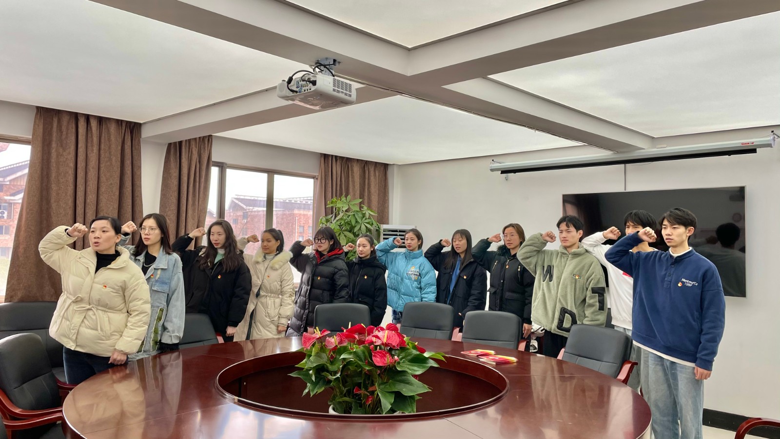 1月4日,戏剧系学生党支部开展寻初心 表决心 主题党日活动。戏剧系党总支专职副书记许瑛、学生党支部全体党员同志参加新党员入党宣誓仪式,仪式由组织员江晓新主持。