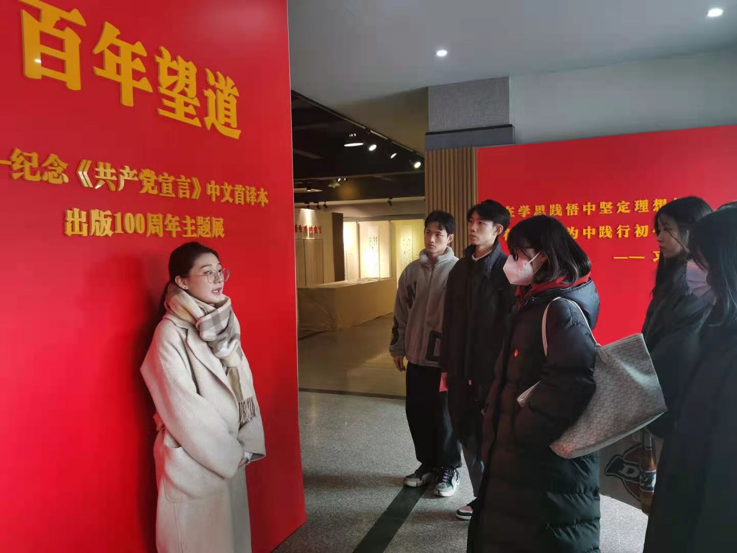 随后,全体党员、部分入党积极分子36期党校学员前往美术系参观“百年望道”——纪念《共产党宣言》中文首译本出版100周年主题展。在美术系孙梦悦同学的讲解下,大家全面了解《共产党宣言》的写作背景、主要内容、本质特征当代价值,陈望道的生平及早年翻译《共产党宣言》的经历再现了马克思主义走进中国,一百年前中国的先进知识分子对“真理味道”不懈追寻的画面大家还参观了美术系学生设计的主题海报、全校100位师生手抄的《共产党宣言》等精彩作品。