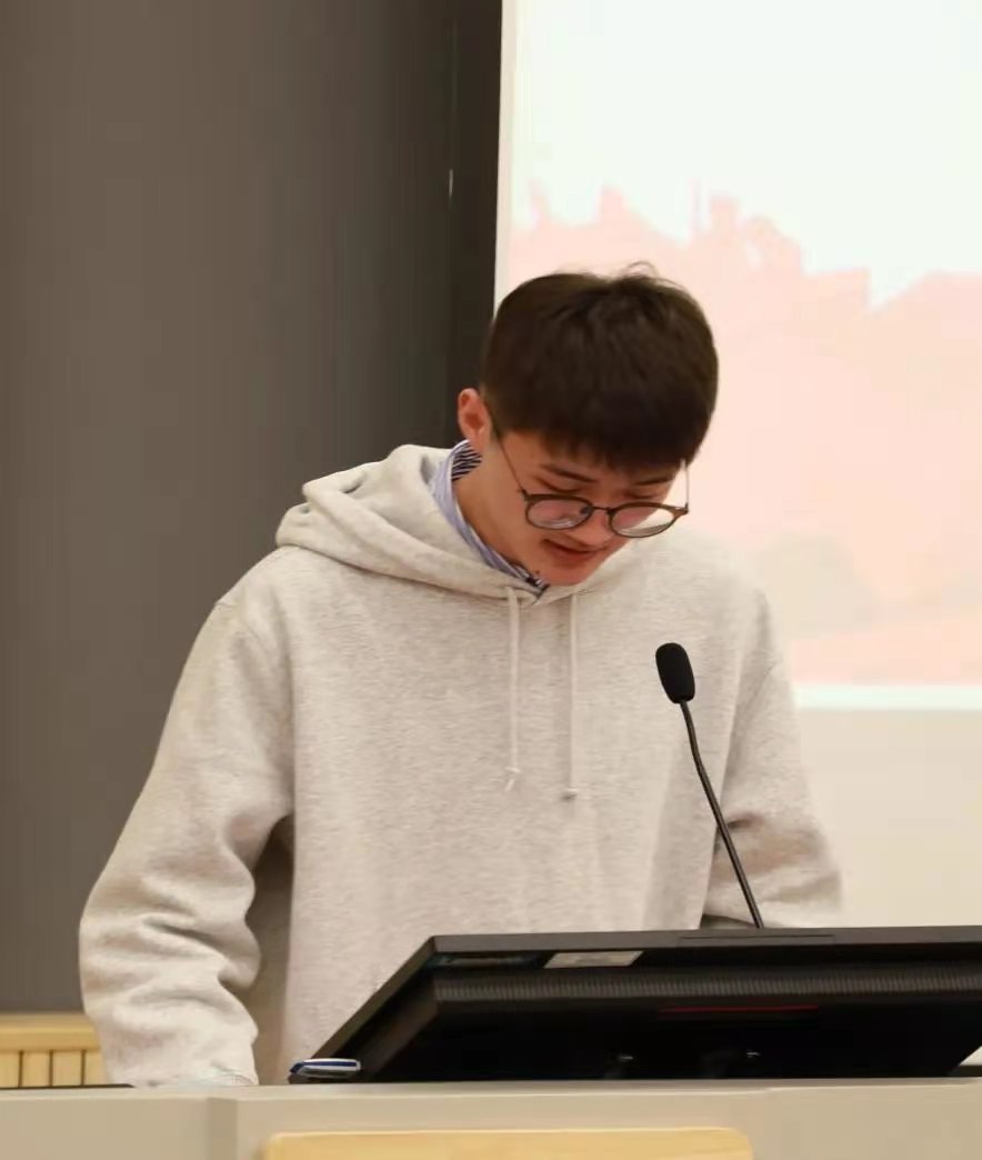 2019级舞美班单士通作为学生代表发言,他表示作为青年理论学习小组的一员,会严肃认真地对待这样一个好的学习平台,积极的投身到系部组织的各项活动中,以实际行动践行青年人的担当作为,引领美术系青年学生努力学习,争做有远大理想的新时代青年。