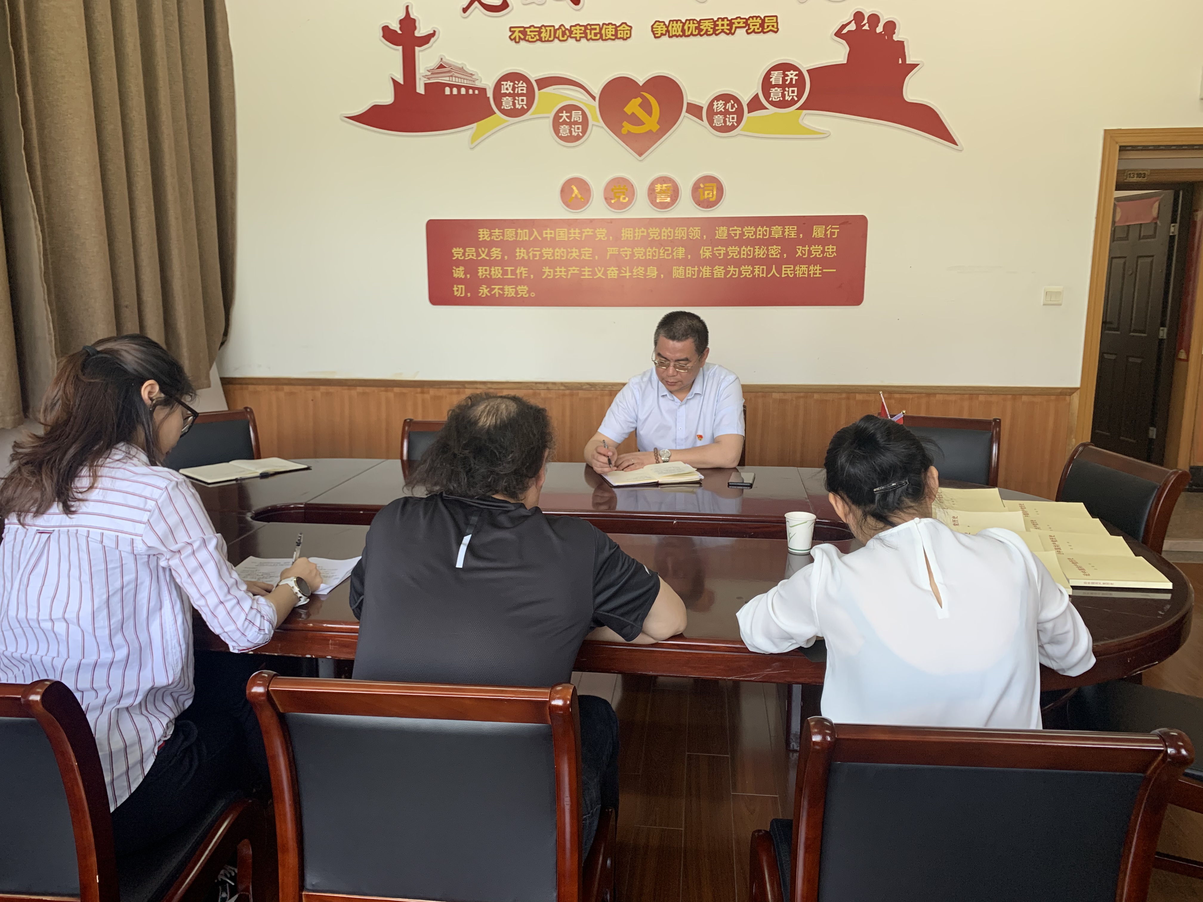 4月30日上午,校纪委副书记、纪检监察室主任汪姚江、组织部副部长马笑迎、纪检监察室副主任季青媛一行三人赴直属社科部党支部开展学校党史学习教育督导检查工作。直属社科部党支部书记、副主任陈毅,社科部党风廉政建设监督员戴垠参加,陈毅主持并做汇报。
