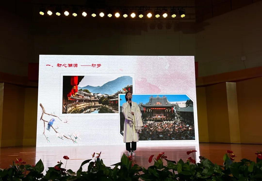 现场展示阶段,戏曲学院2016级越剧班陆祎杨和2017级越剧班黄霜霜同学以《赓续传承——我是浙艺戏曲追梦人》和《梨园筑梦 艺心向党》为题,进行了现场演讲和双人组合长水袖技能展示,最终以优异表现在众多选手中脱颖而出,荣获本届浙江艺术职业学院“十佳大学生”称号。