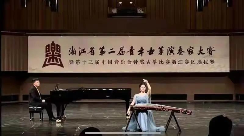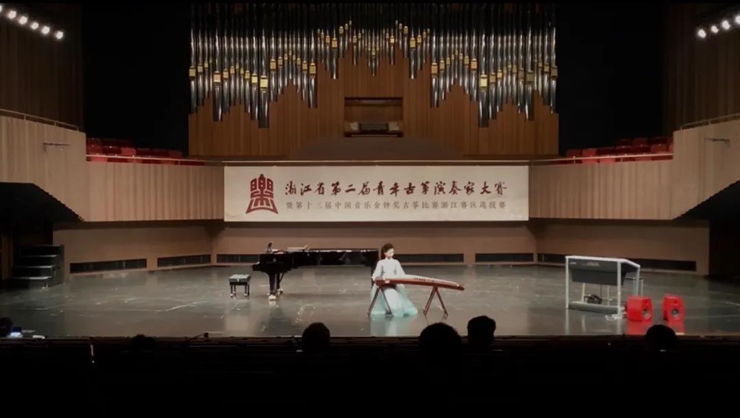 浙江省青年古筝演奏家大赛分为选拔赛与现场决赛两轮进行。选拔赛中,蔡雨婷和程子瑄在众多优秀选手中脱颖而出,成功进入前十名,获得现场决赛资格。在决赛现场,她们与来自中央音乐学院、上海音乐学院、浙江音乐学院研究生、本科生同台竞技。面对强大对手,作为全场年龄最小的两名选手,蔡雨婷和程子瑄毫不怯场,迎难而上。当天,她们弹奏了《大武》《箜篌引》《如是》《姜女泪》等高难度乐曲,凭借平时的辛勤练习,将乐曲在舞台上倾情展现,对比专业音乐学院的选手毫不逊色,双双获得银奖的优异成绩。