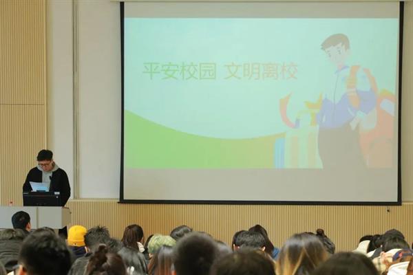 龚林峰向全体毕业生发出文明离校倡议,同时从实习安全、公寓退宿、离校实习手续办理等方面内容进行详细讲解,帮助学生厘清离校步骤,解答学生疑惑。