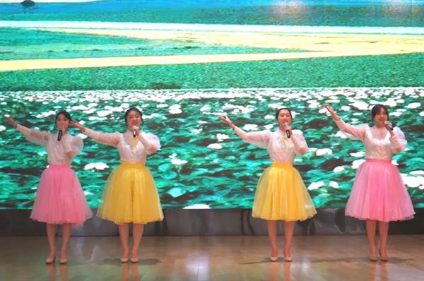 20歌舞班沈娅如、潘颖欣、蔡依娜、叶馨漪同学带来的歌曲《田野的春天》,他们用歌声描绘着一望无际的田野,悄然绽放的高雅美丽的野花,欢快轻松的旋律中,春日的暖意缓缓流进每个人的心田。