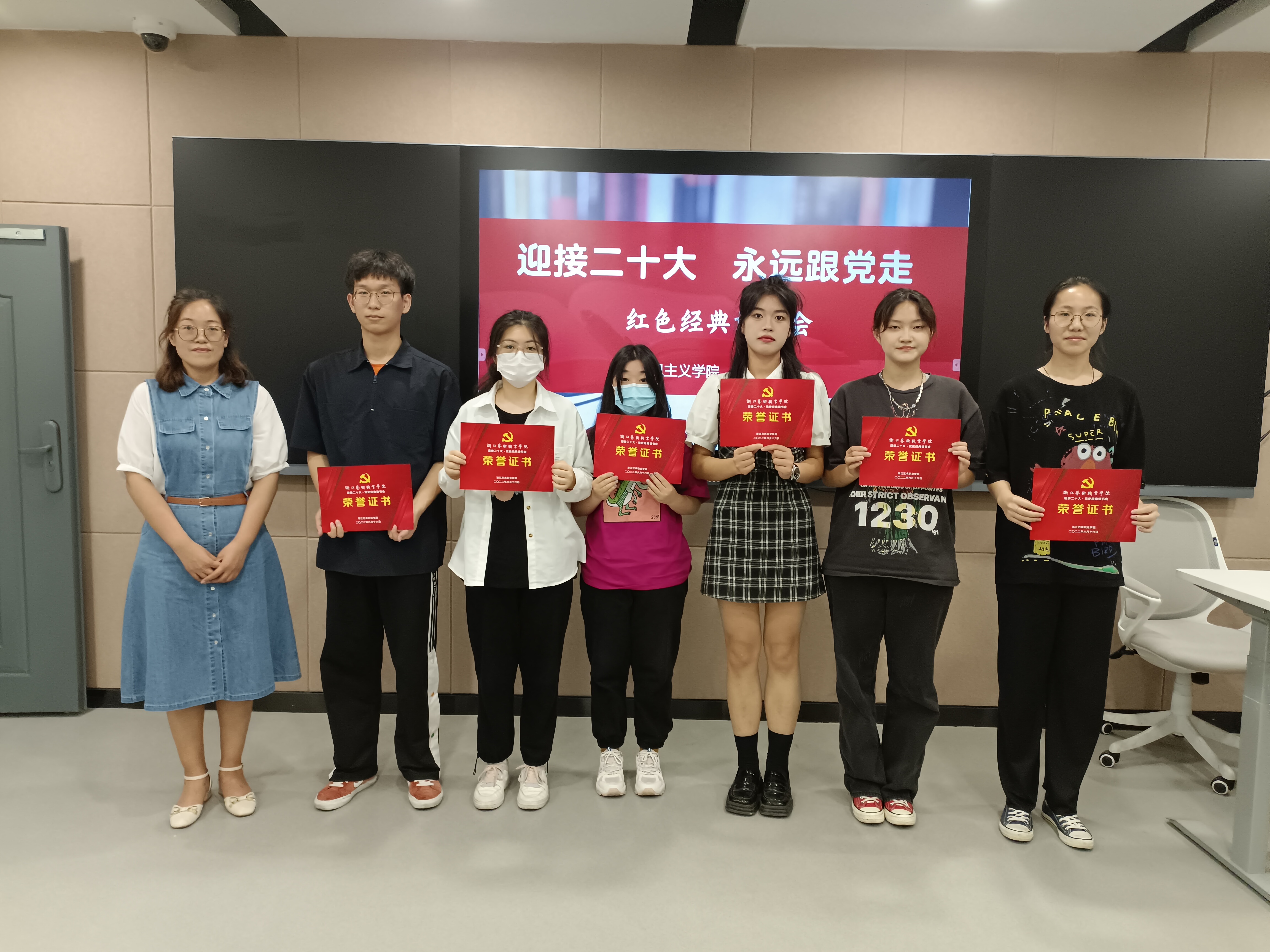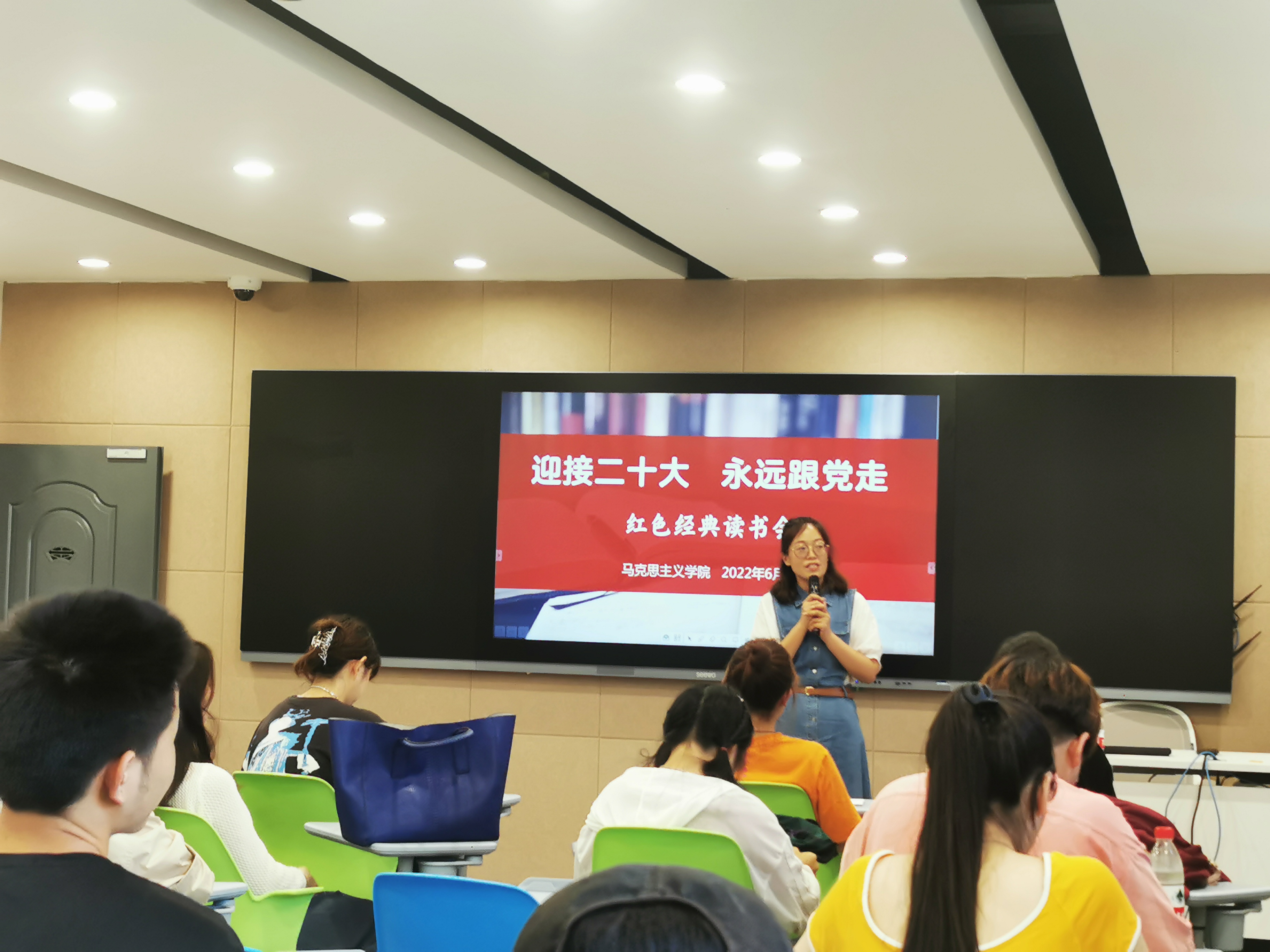 6月16日晚,浙江艺术职业学院“迎接二十大·永远跟党走”党史经典读书会在8707智慧教室举行。读书会以歌颂伟大建党精神、弘扬传承红色精神、传播中华优秀传统文化为主旨。活动前期,马克思主义学院组织全校高职以及本科班一年级学生读一本红色经典书籍、写一篇读后感,让同学们通过品读红色经典著作,来感悟时代变化,体味人生价值。同时,通过遴选优秀读书心得,进行分享交流。马克思主义学院直属党支部书记、副院长陈毅,副院长胡卓群以及基础教研室专兼职教师参加活动。