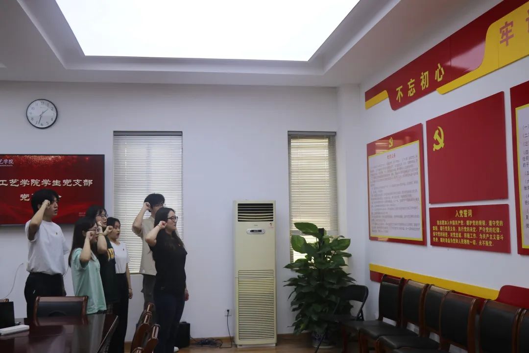 学生党支部书记胡墨智丽带领毕业生党员重温入党誓词。庄严的承诺让每一位党员都将誓词铭记在心,让大家在离校的时刻增强爱党、爱国、爱校的意识,在将来的工作岗位上不断努力,树立手工艺学院学生党员良好的形象。