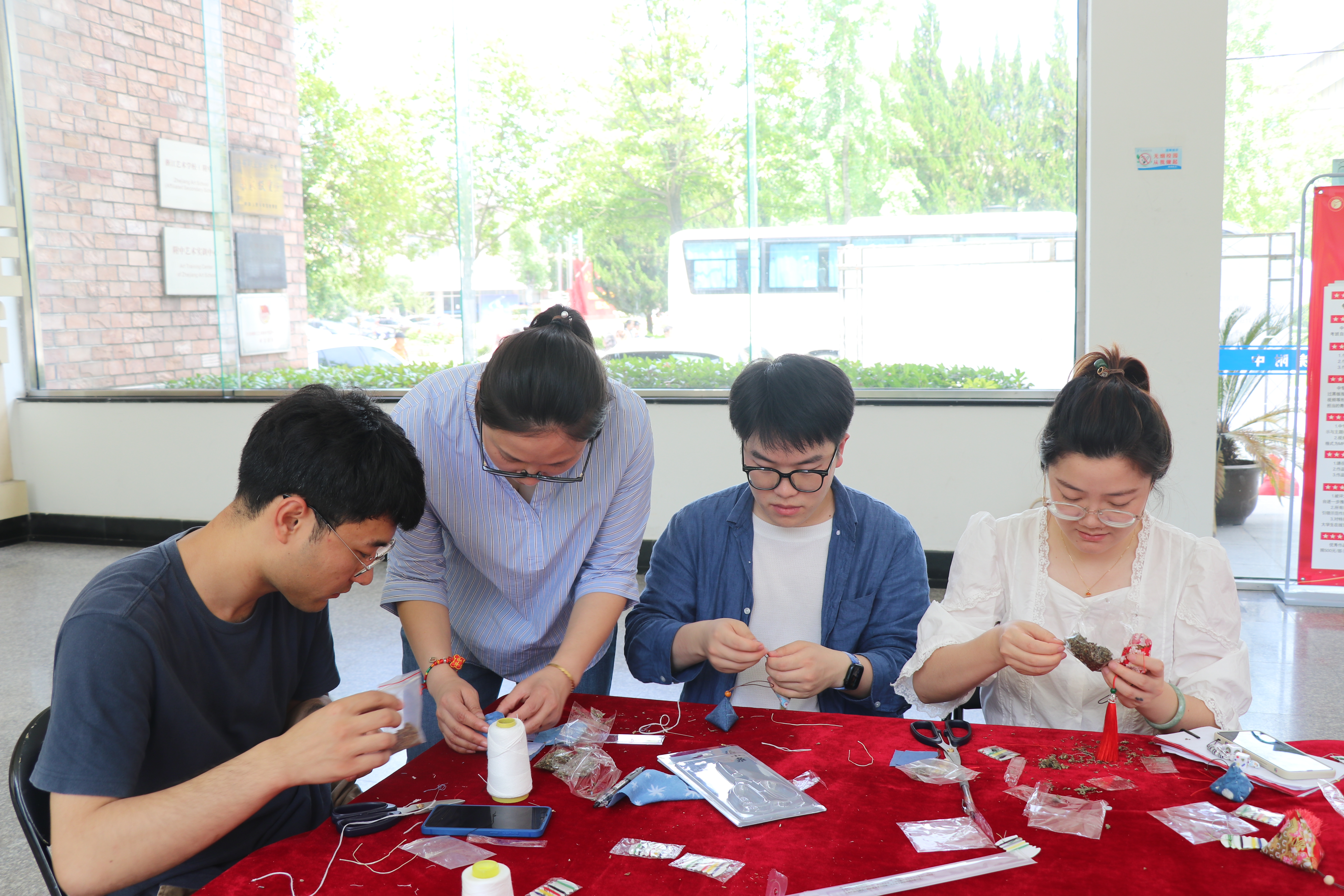 在传统佳节端午节到来之际,手工艺学院于6月2日在五号楼大厅开展手工艺活态体验——端午香包制作活动。全校三十多位师生参与本次端午香包制作的”活态体验“活动,会场座无虚席,师生热情高涨。